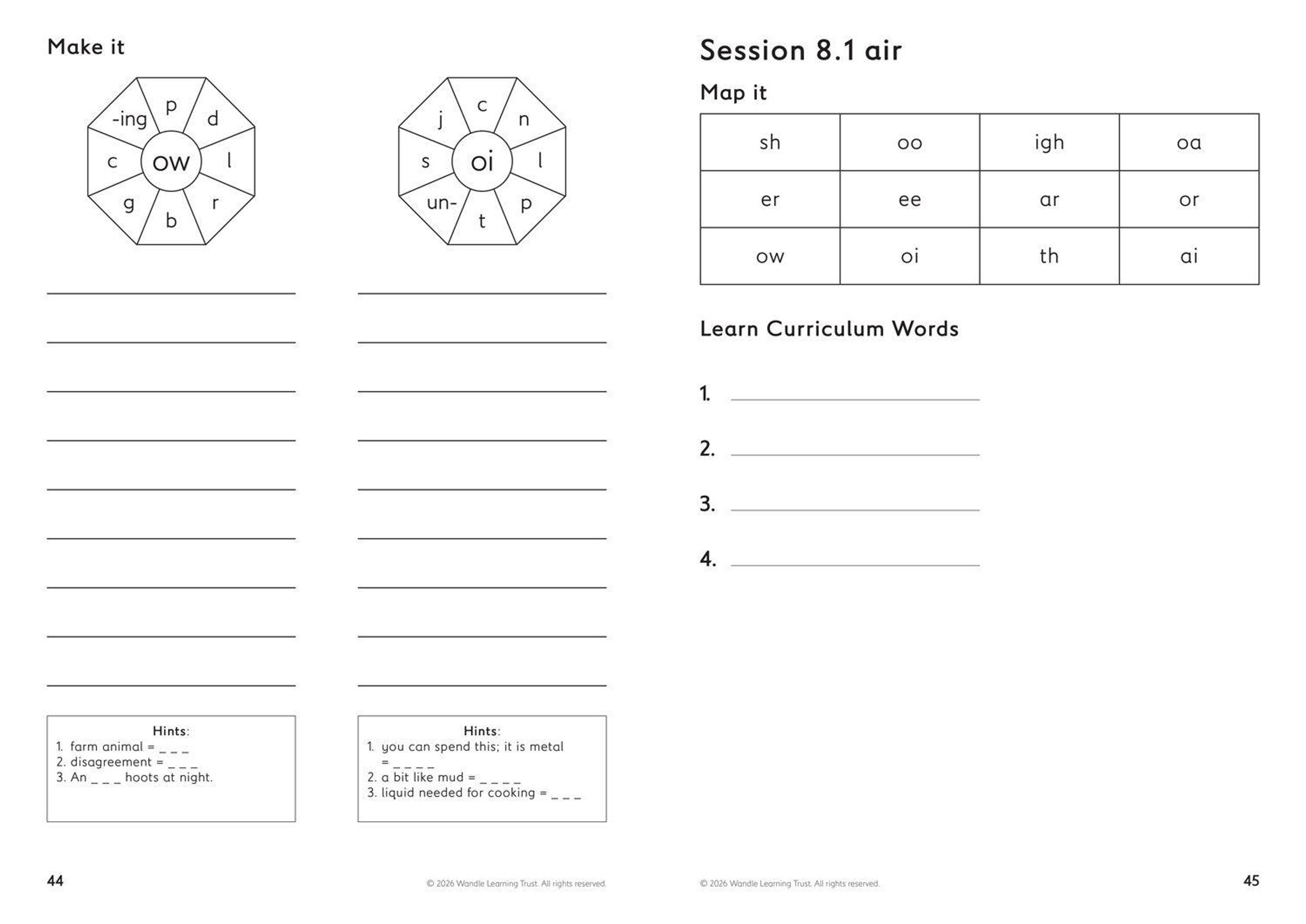 Students work through the workbook in the intervention sessions to secure their phonic knowledge and build confidence through consistent and carefully designed activities.