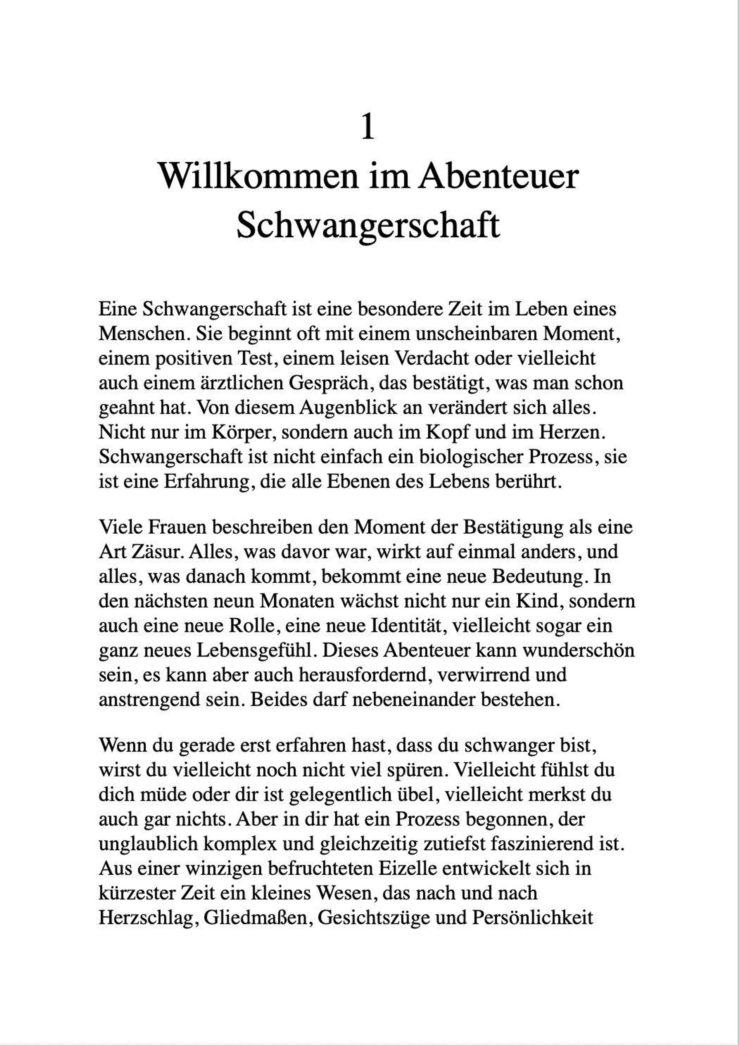 Text: "Was dich in den nächsten 9 Monaten erwartet." Illustration einer Schwangerschaft mit Umriss einer Frau., Buch