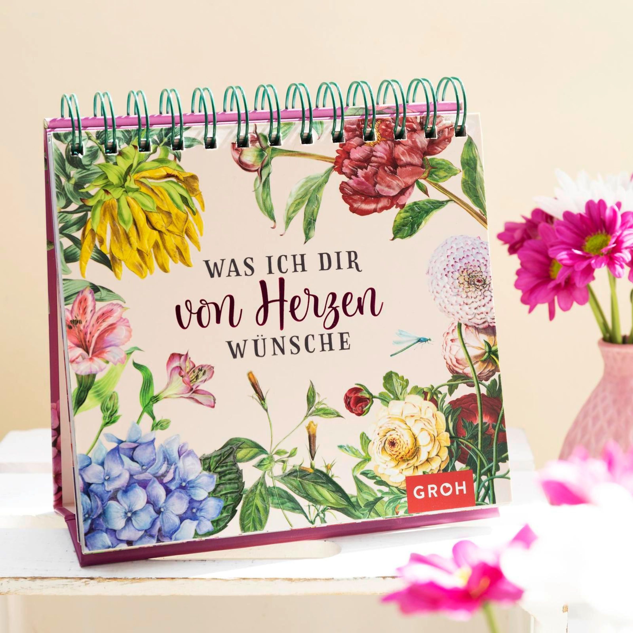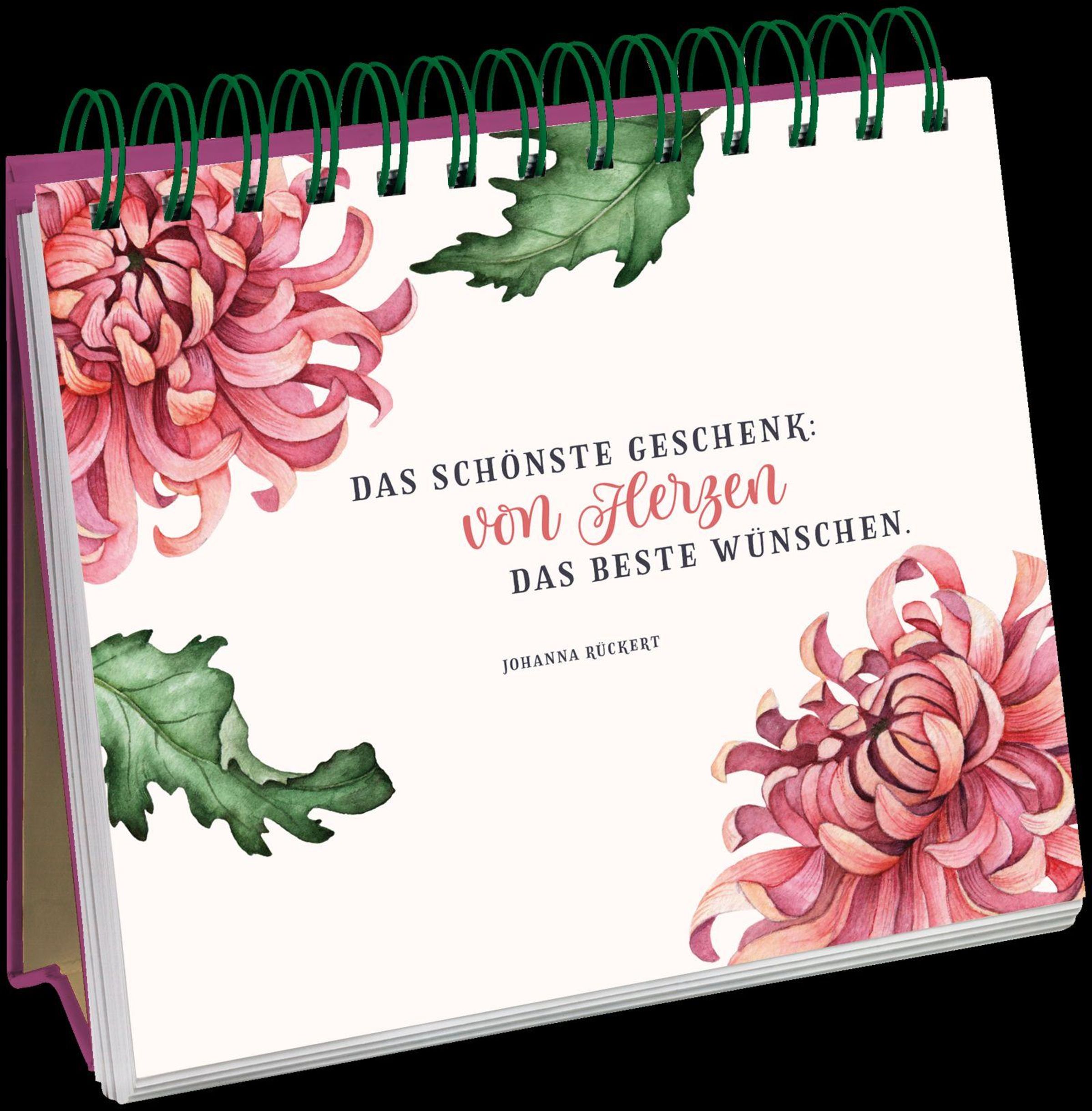 Die modernen Blumenillustrationen in Vintage-Optik machen den immerwährenden Aufsteller zu einem wunderschönen Deko-Objekt auf dem Schreibtisch oder im Regal.