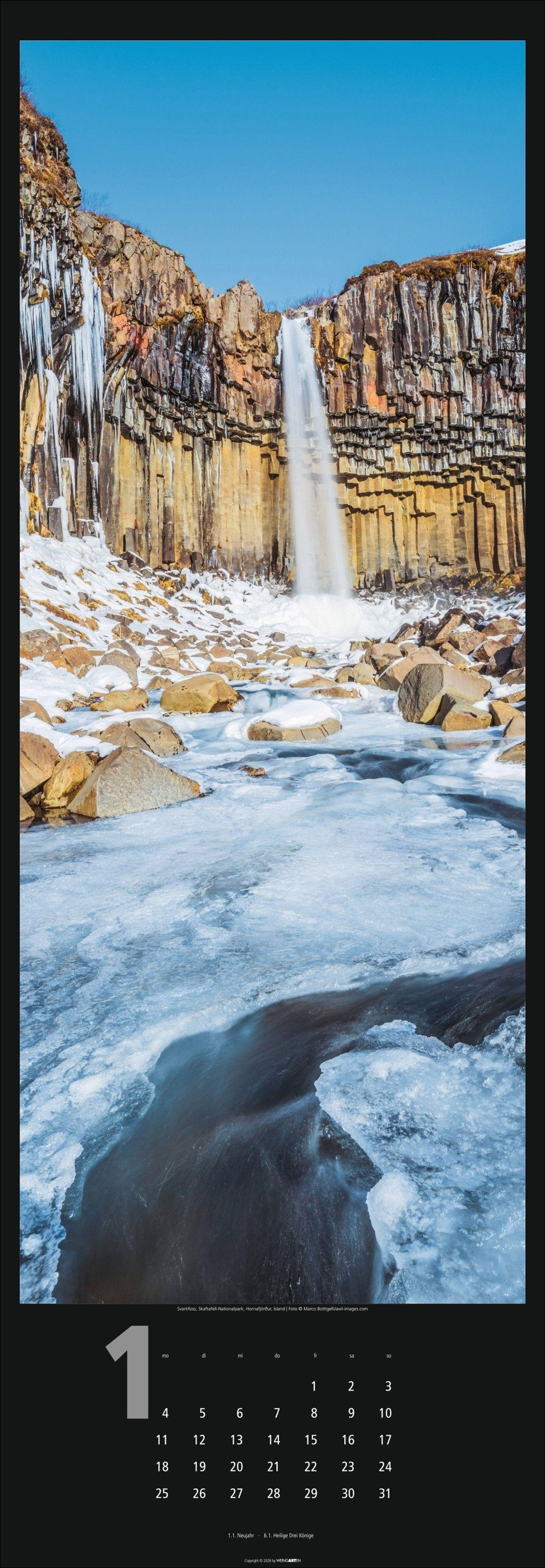 - XXL Hochformat mit spektakulären Wasserfällen, fotografiert von international ausgezeichneten Fotografen. Länglicher Kalender mit traumhaften Naturfotos. 34x98 cm Hochformat