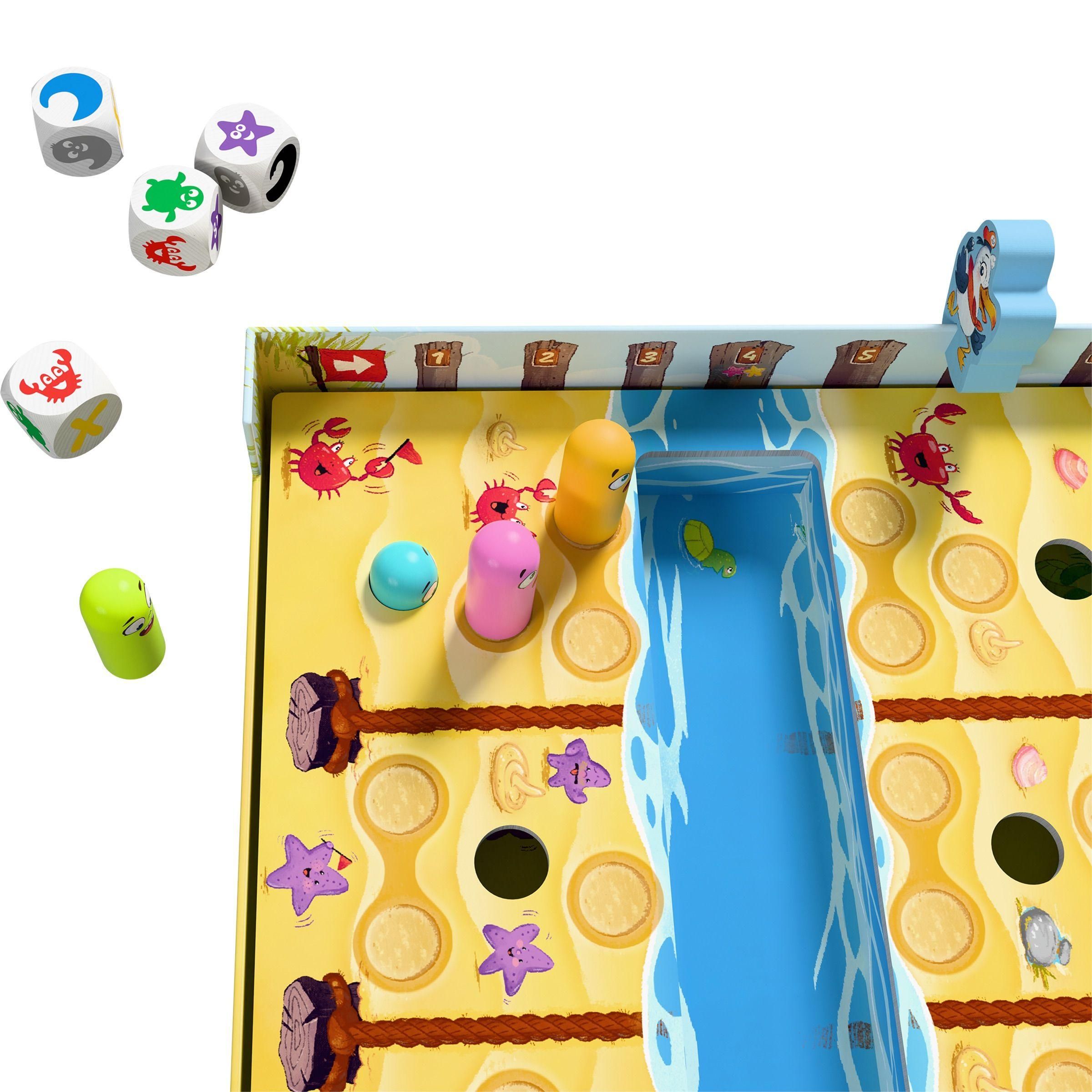 Ach Watt! Heute ist Action am Strand, denn gleich startet die große Watt-Rallye! Nur mit den richtigen Würfelergebnissen können die eigenen Wattwurm-Teams über die Rennstrecke flitzen, um schnellstmöglich das Riff zu erreichen. Doch Achtung: Die Welle spült alle zurück, die sich nicht rechtzeitig in den Sandlöchern verstecken! Wer seine Wattwürmer mit Taktik und etwas Würfelglück zuerst ins Ziel bringt, gewinnt die Rallye.