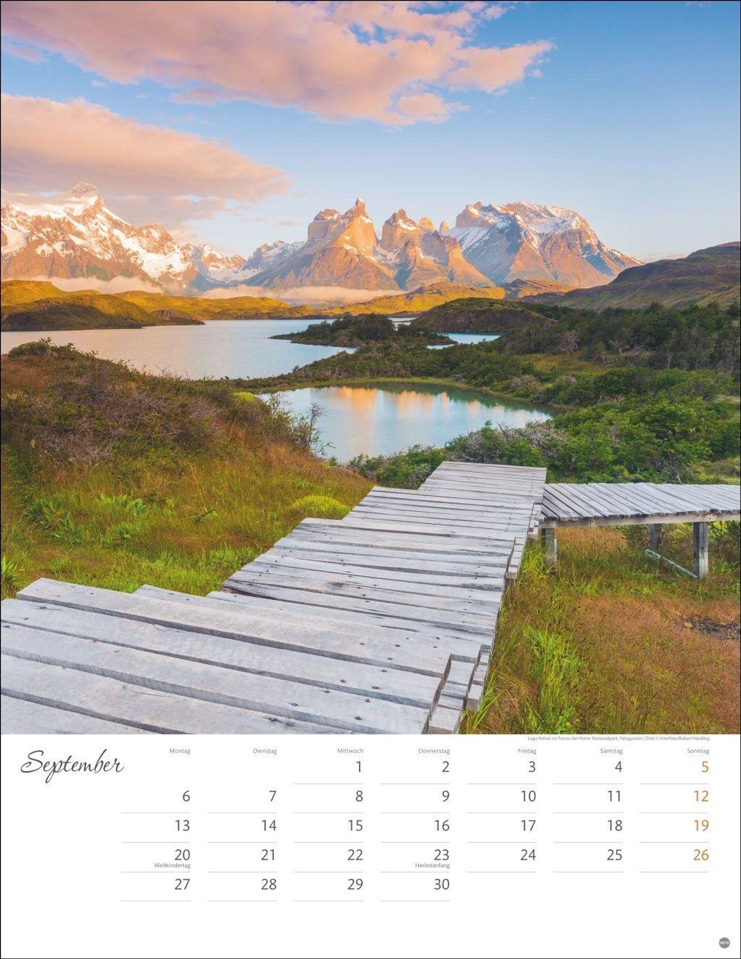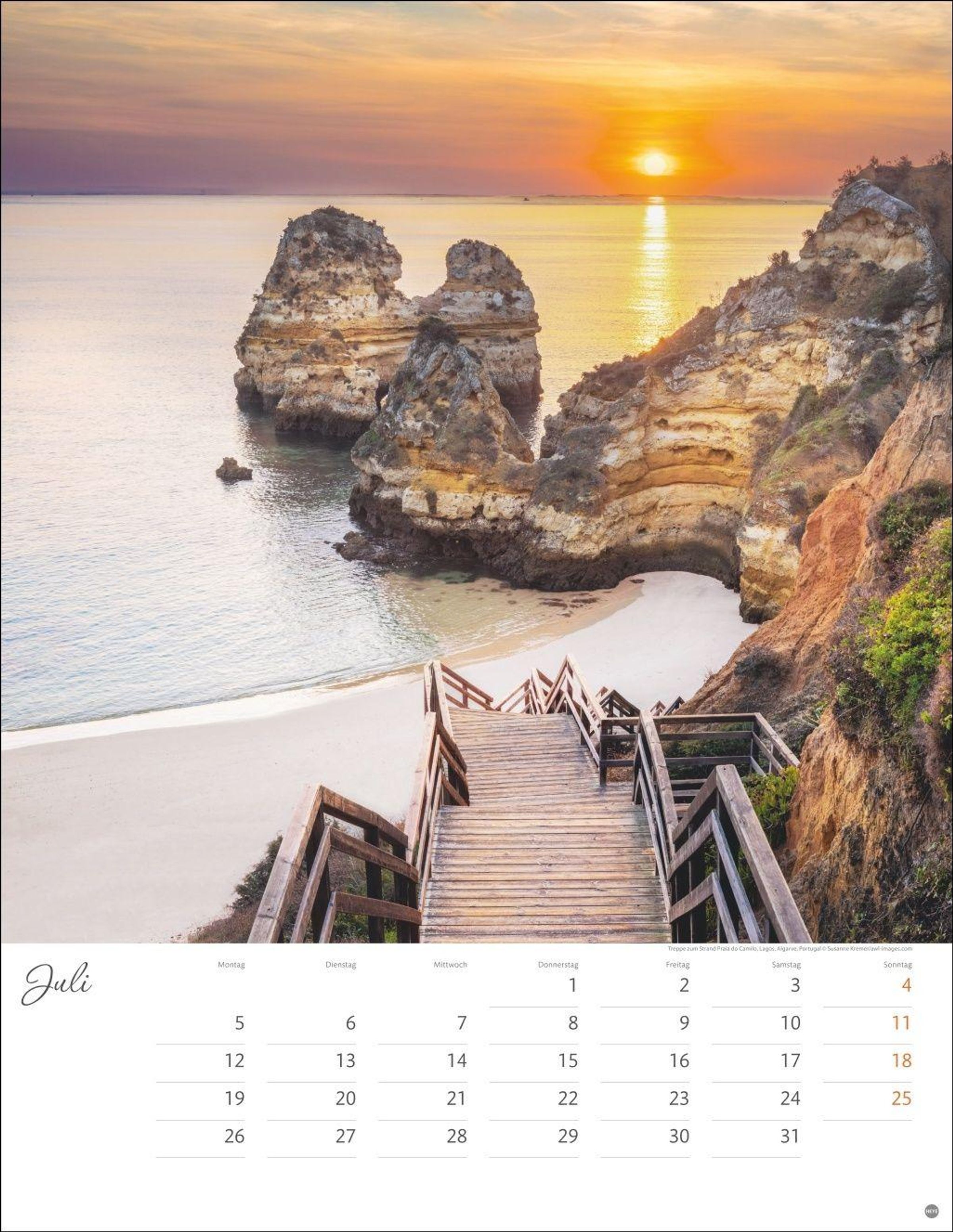 "Wege zum Träumen 2027" steht oben. Eine Treppe führt durch eine grüne Landschaft mit Feldern und Bäumen im Sonnenuntergang., Kalender