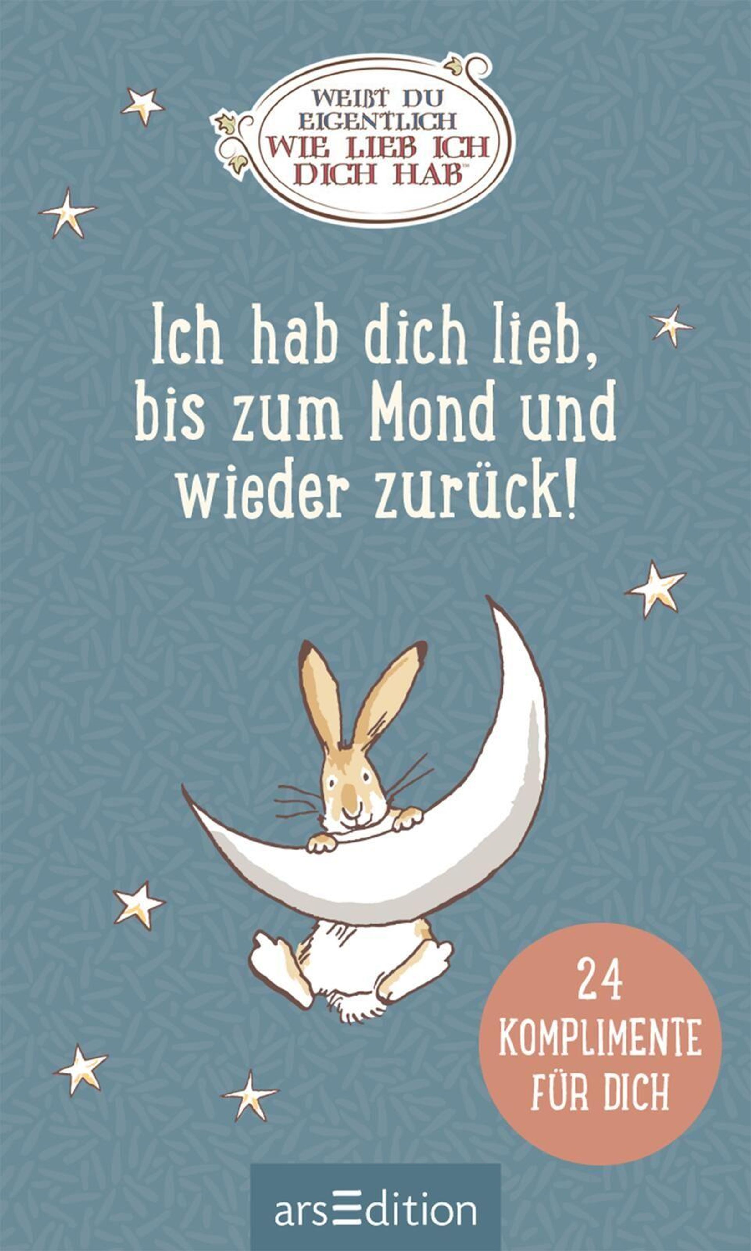 Weißt du eigentlich, wie lieb ich dich hab? Ich hab dich lieb, bis zum Mond und wieder zurück!