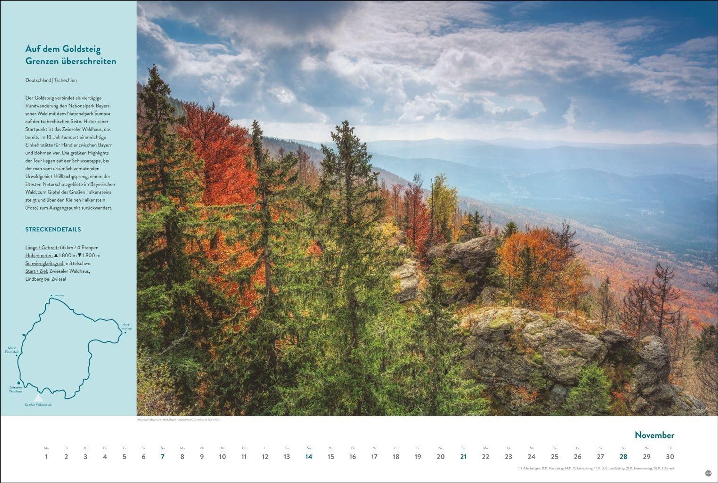 - Wandkalender im Querformat 58 x 39 cm, der zu Touren auf Europas Wanderrouten einlädt: Stimmungsvolle Landschaften und Strecken-Infos, inkl. kleiner Karten