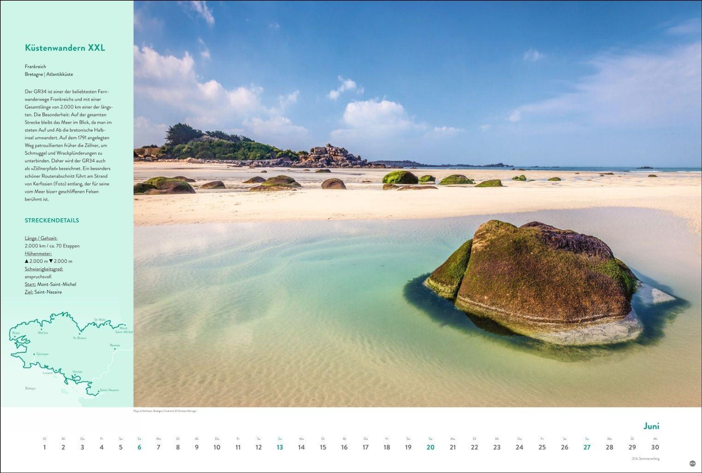 Costa Brava, Südtirol oder Bretagne: Mit dem Jahres-Wandkalender 2027 sind sie Monat für Monat auf den schönsten Fernwanderwegen Europas unterwegs