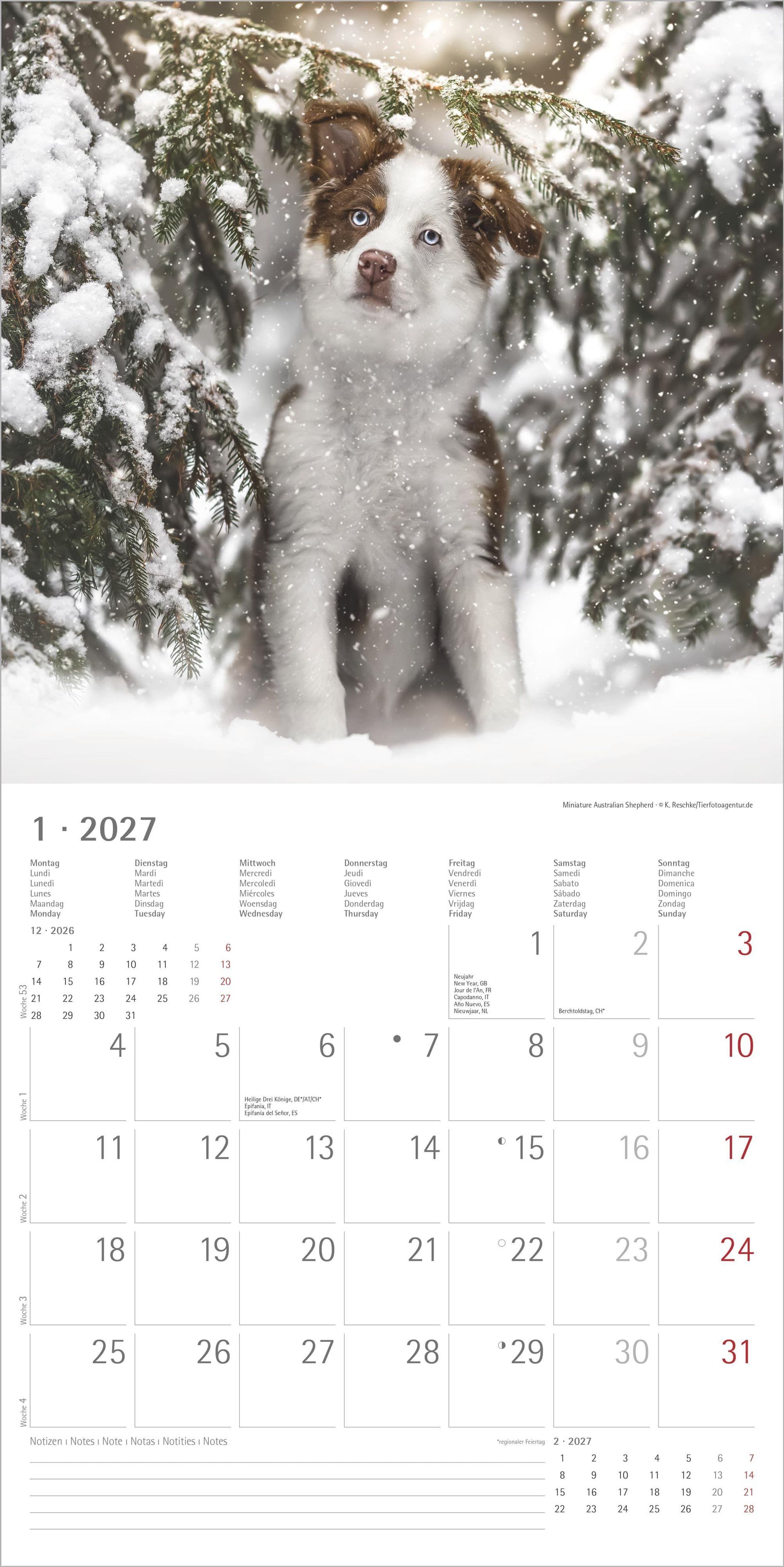 Der Alpha Edition Welpen Kalender 2027 bringt Monat für Monat Freude in Ihr Zuhause. Zwölf liebevoll ausgewählte Fotografien zeigen verspielte Hundewelpen in herzerwärmenden Momenten -- ein Muss für jeden Hundefan. Dank des großzügigen Bildformats von 30 x 30 cm (aufgeklappt 30 x 60 cm) kommen die niedlichen Vierbeiner besonders gut zur Geltung und sorgen für ein Lächeln, wann immer Sie hinschauen.