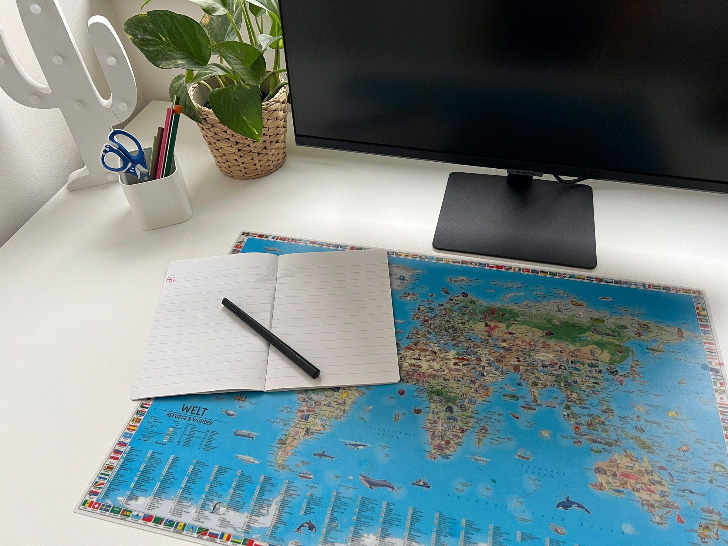 Die Schreibunterlage - Weltkarte für Kinder ist ideal für junge Entdecker. Die Weltkarte bietet einen kindgerechten Überblick über die Erde und steckt dabei voller spannender Details. Machen Sie das Lernen bunt und spannend mit unserer rutschfesten Schreibunterlage für Kinder!