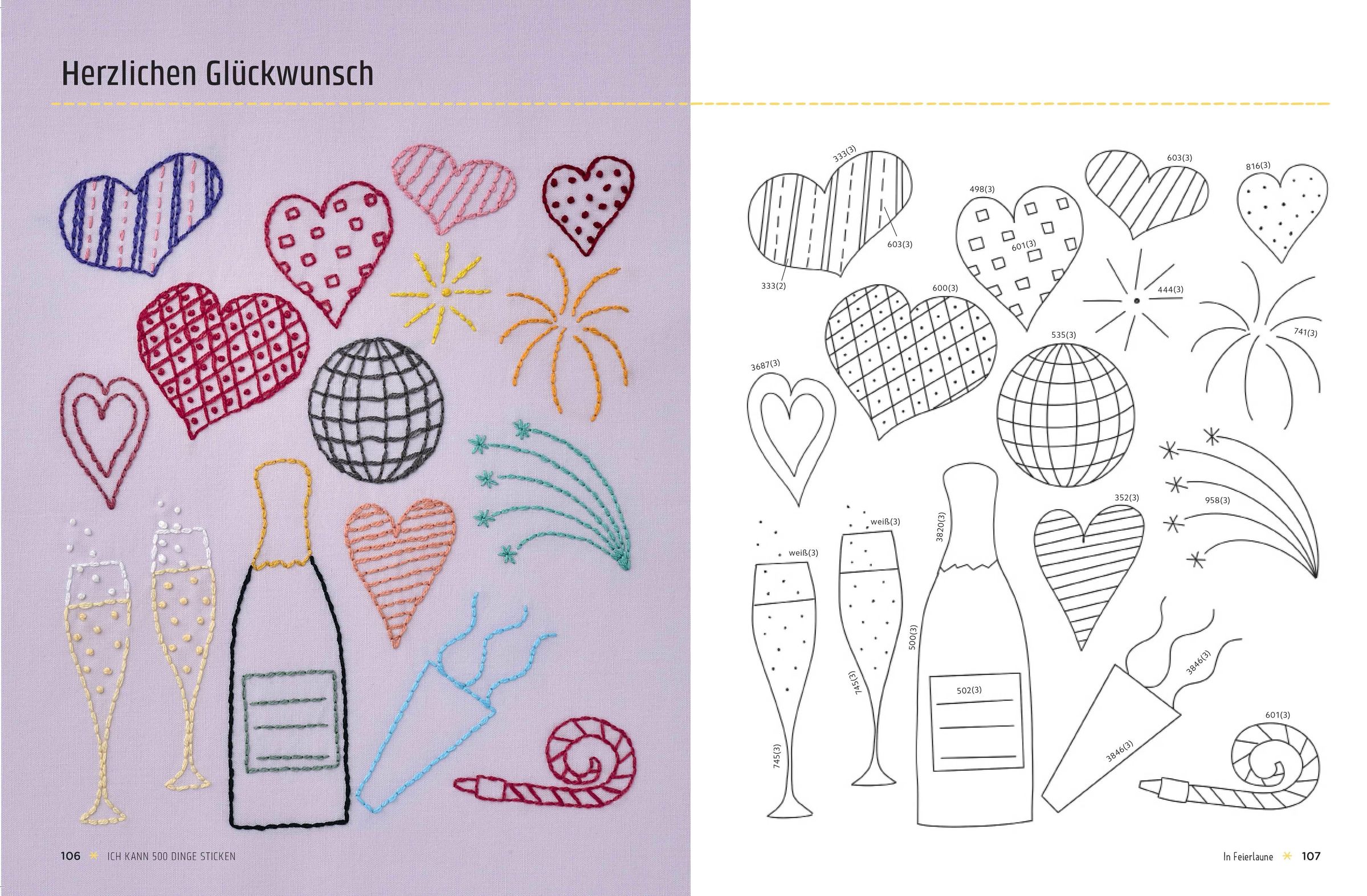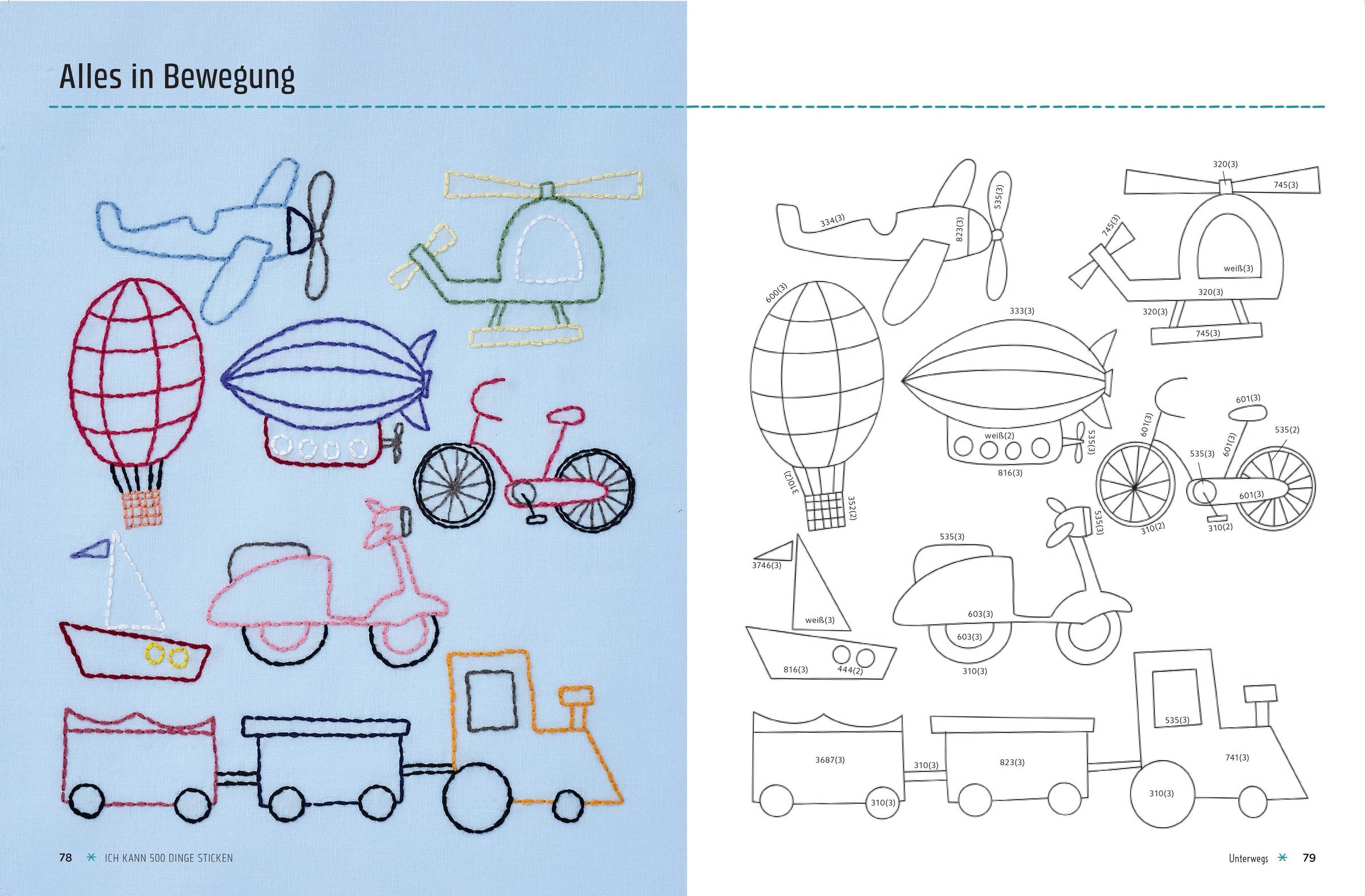 Ich kann 500 Dinge sticken. Witzige, süße, coole und freche Motive. Ganz einfach Schritt für Schritt nachzusticken. Blumen, Blüten, Blätter, Tiere, Logos, Schriften, Schmuckelemente u.v.m. Ideal für Kinder und Anfänger
