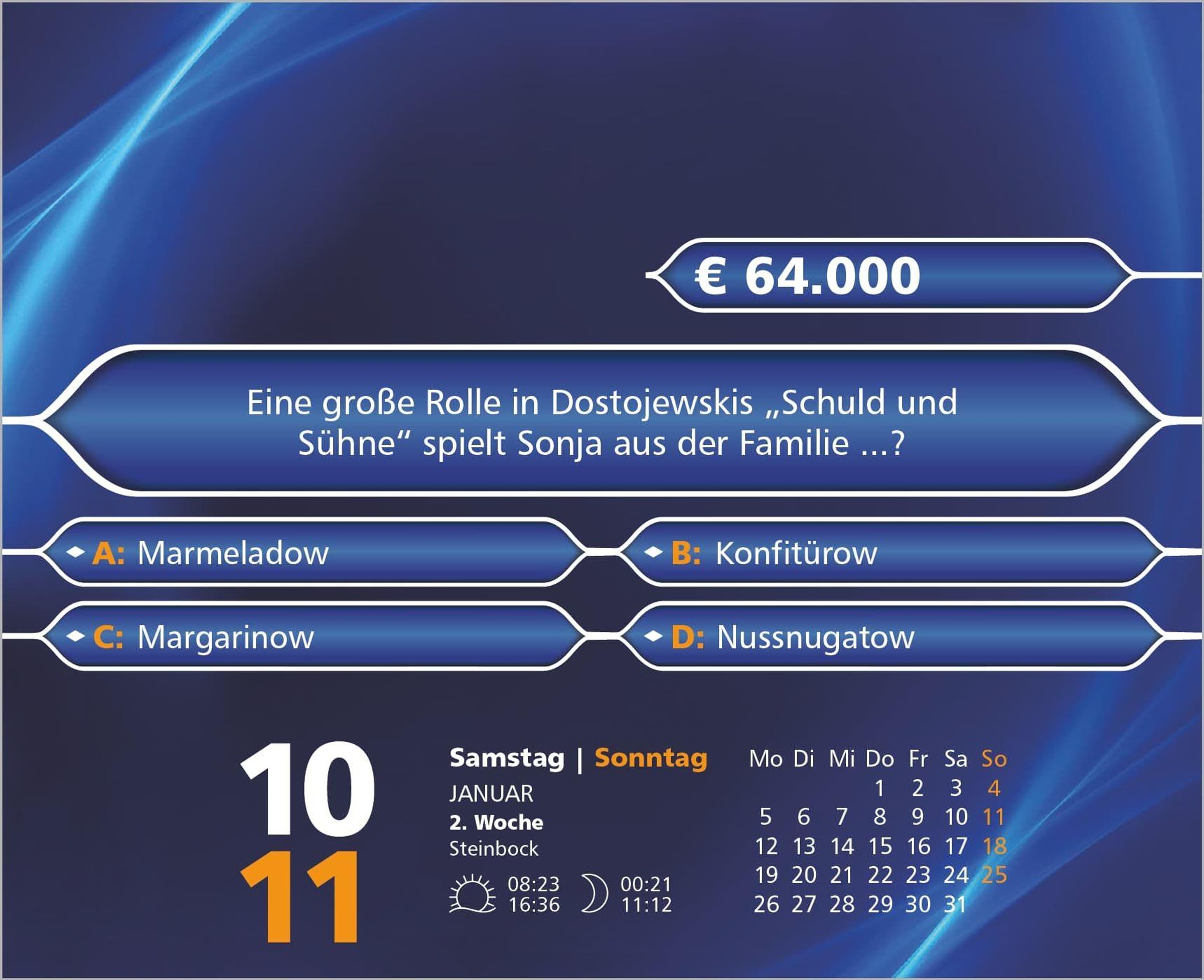 Der „Wer wird Millionär 2027" Tagesabreißkalender von Dumont ist nicht nur ein unterhaltsamer Begleiter durch das Jahr, sondern auch ein cleveres Geschenk für alle, die gern rätseln, ihr Wissen testen oder einfach Spaß am Quizzen haben.