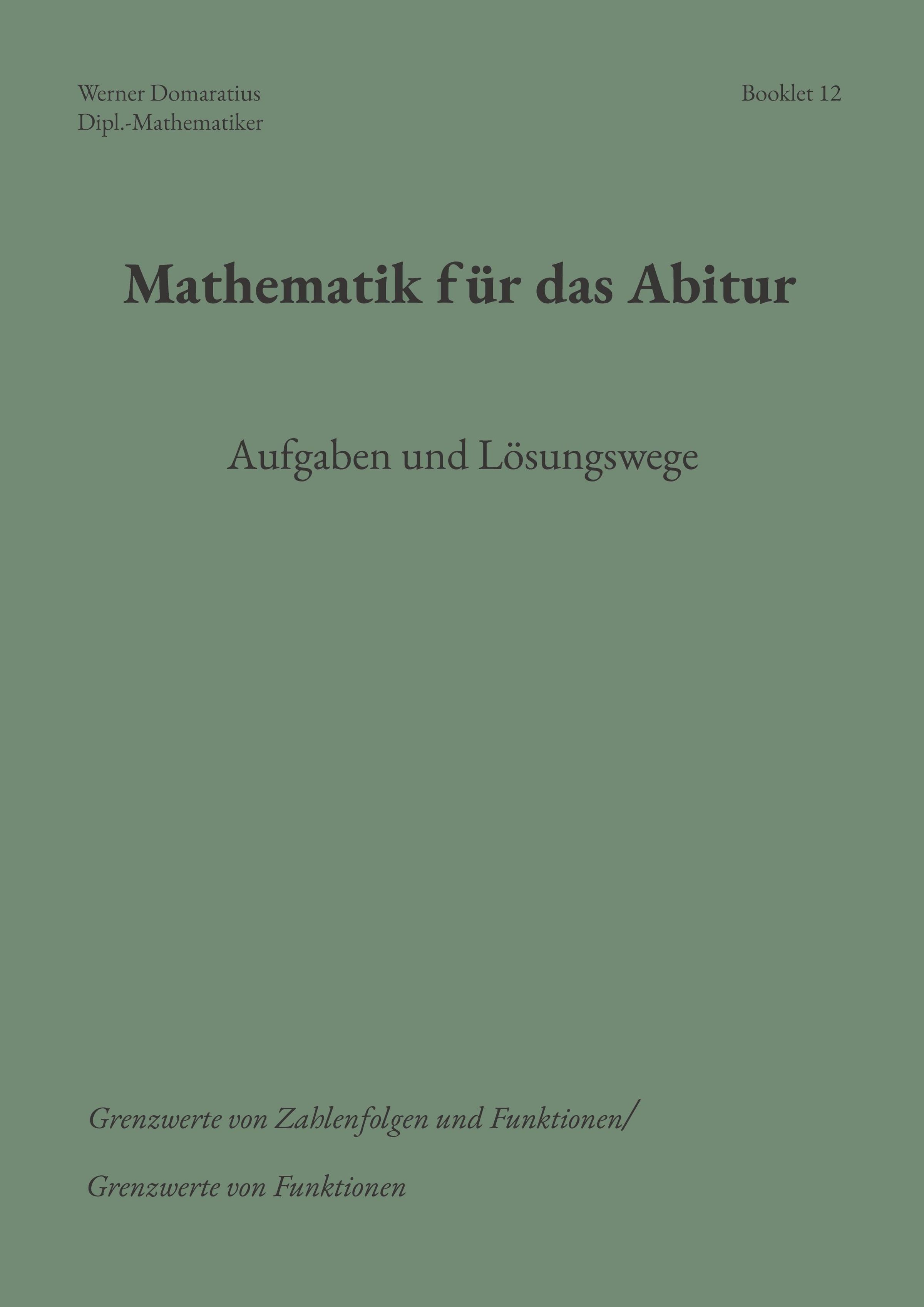 Booklet 1: Der Begriff Funktion Booklet 2: Lineare Funktionen Booklet 3: Quadratische Funktionen Booklet 4: Potenzfunktionen, Kurvenscharen Booklet 5: Trigonometrische Funktionen Booklet 6: Exponential- und Logarithmusfunktionen Booklet 7: Verknüpfen, Verketten und Umkehren von Funktionen Booklet 8: Weitere reelle Funktionen Booklet 9: Zahlenfolgen, Eigenschaften Booklet 10: Spezielle Zahlenfolgen Booklet 11: Grenzwerte von Zahlenfolgen Booklet 12: Grenzwerte von Funktionen Booklet 13: Der Begriff Ableitung einer Funktion, Ableitungsregeln Booklet 14: Ableitung elementarer Funktionen Booklet 15: Untersuchung von Funktionseigenschaften Booklet 16: Kurvendiskussion Booklet 17: Extremwertprobleme Booklet 18: Unbestimmtes / bestimmtes Integral Booklet 19: Anwendungen der Integralrechnung Booklet 20: Integration weiterer Funktionen Booklet 21: Vektoren im Betrachtungsraum Booklet 22: Vektoren in Koordinatensystemen Booklet 23: Geraden in Ebene und Raum Booklet 24: Ebenen im Raum Booklet 25: Skalarprodukt von Vektoren Booklet 26: Kreis und Kugel