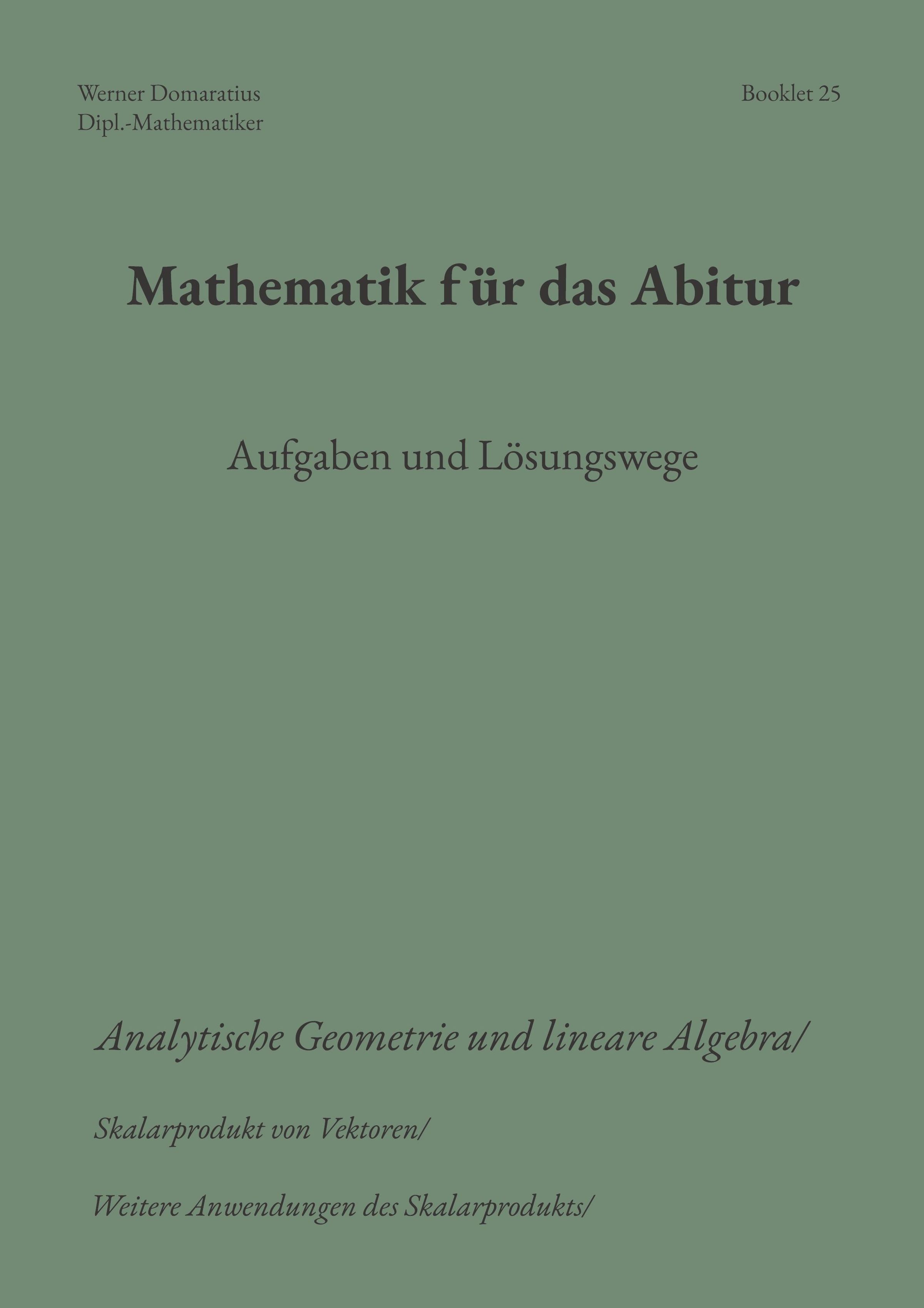 Buchtitel: "Mathematik für das Abitur" – Aufgaben, Lösungswege. Grüner Hintergrund, sachlicher Text., Buch