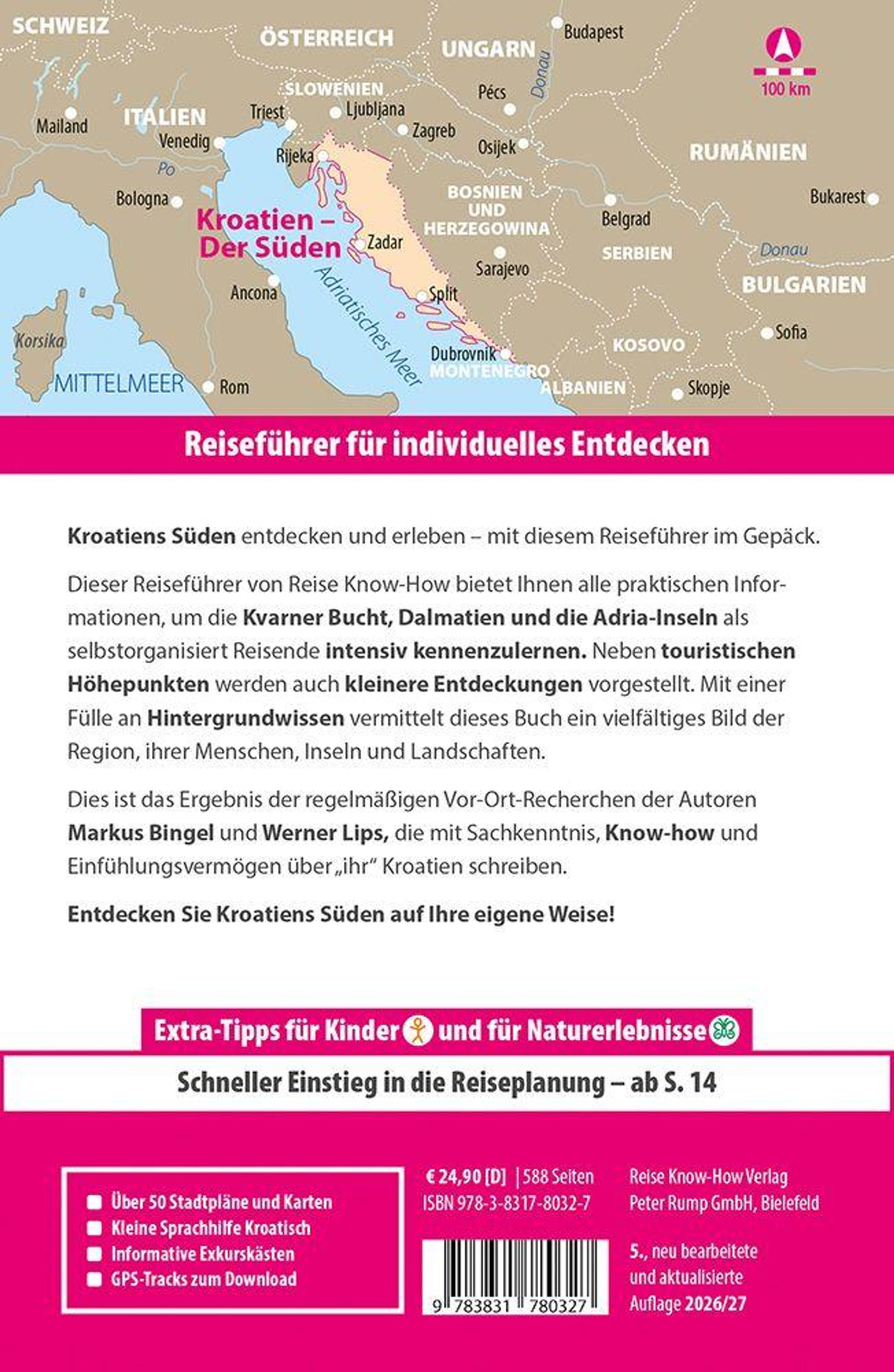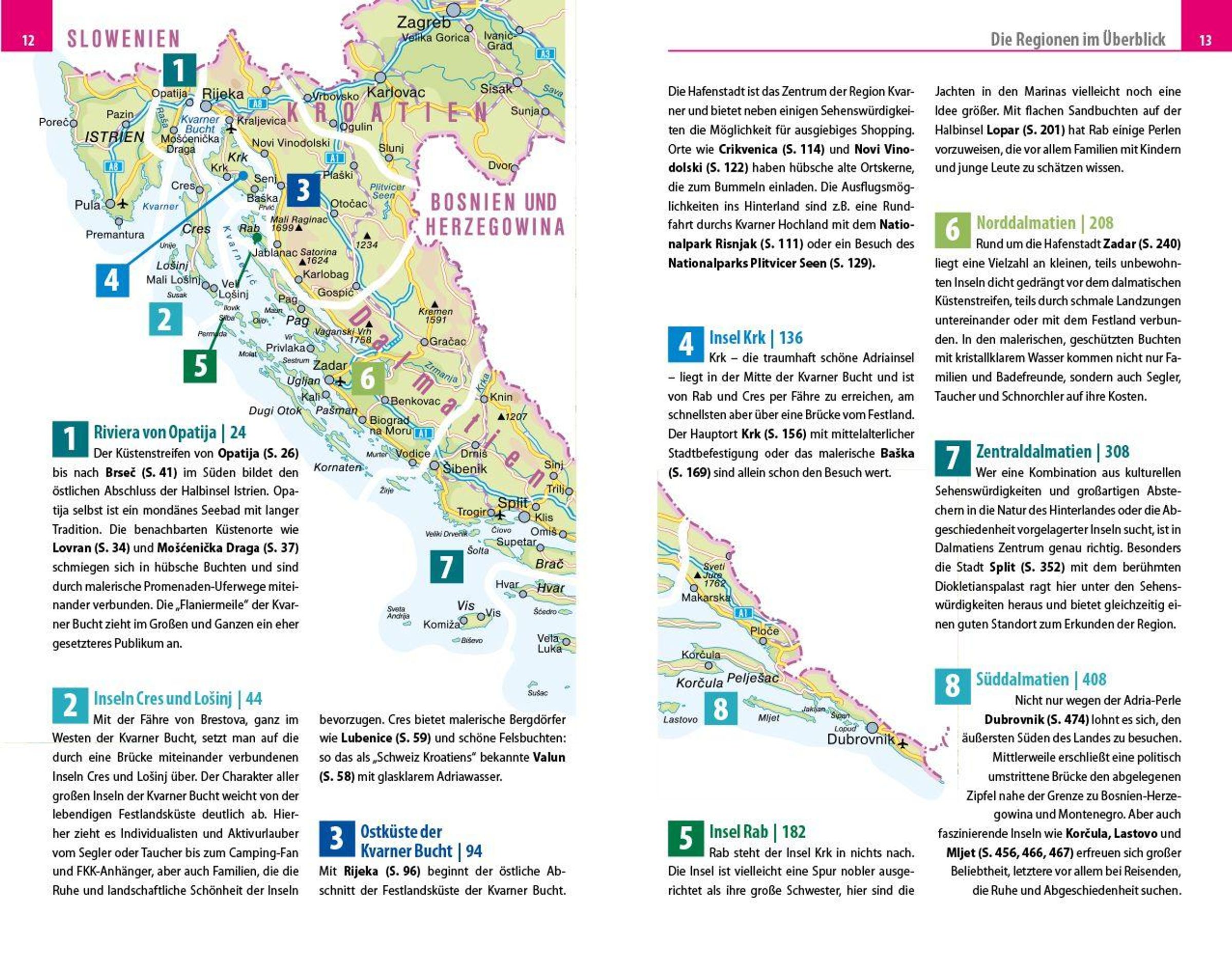 Die Kvarner Bucht mit den Inseln Krk, Rab, Cres und Losinj wird geschätzt von Individualisten, die keine allzu lange Anreise wollen und dennoch Urlaubsorte suchen, die ihre Ursprünglichkeit bewahrt haben. Die dalmatinische Küste weiter südlich beeindruckt mit einer faszinierenden Inselwelt und malerischen Städten wie Split, Zadar, Trogir und Dubrovnik, deren Altstadtkern zum Weltkulturerbe der UNESCO gehört. Dieser Reiseführer deckt die gesamte Küstenregion der Kvarner Bucht und Dalmatiens ab - von Opatija im Norden bis zur montenegrinischen Grenze im Süden, mit einem Abstecher zum Nationalpark Plitwitzer Seen (Plitvice).