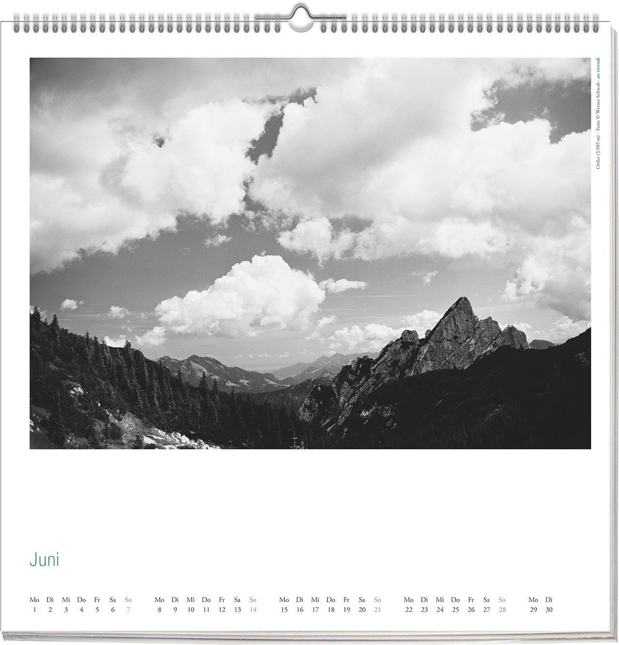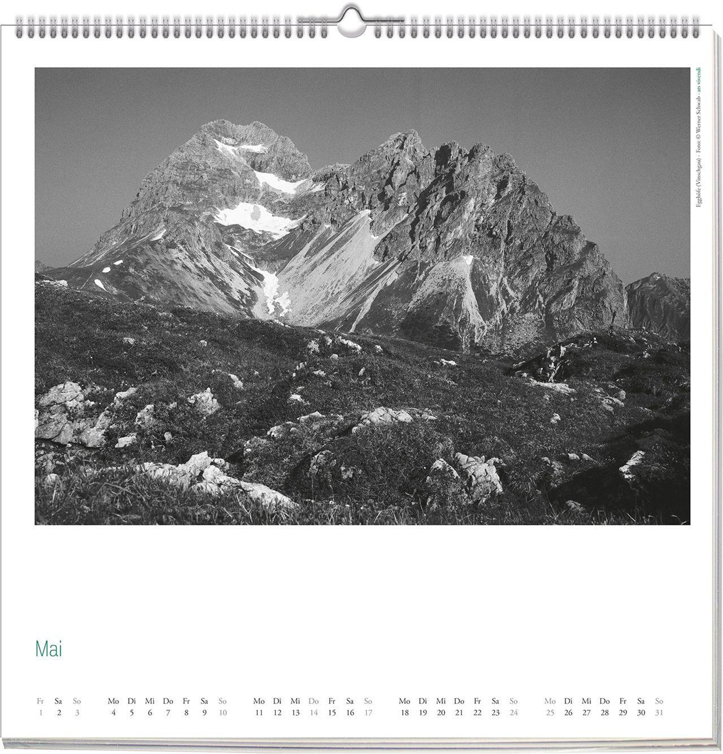 12 Monate Bergpoesie: Majestätische Gipfel, stille Täler und faszinierendes Licht -- eingefangen in eindrucksvollen Schwarz-Weiß-Fotografien von Werner Schwab.