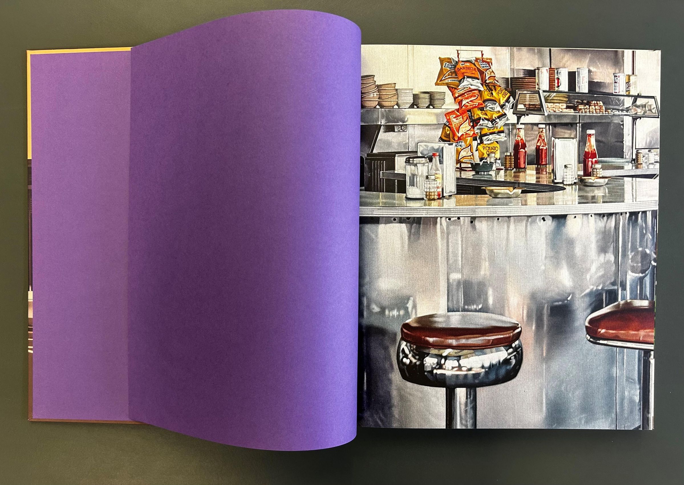 Das Buch ist eine Hommage an die Illusionskraft der Malerei und zugleich ein globaler Spaziergang durch die moderne Alltagskultur: Bilder von chromblitzenden Fahrzeugen in bürgerlichen Wohngegenden, knallbunten Candys, glänzend schimmernden Lippenstifthüllen, oft menschenleeren Schnellrestaurants oder grellen Reklamemotiven. Sie alle bestechen durch technische Brillanz und eine verblüffend präzise Wirklichkeitsnähe, die den Wettstreit mit der Fotografie sucht und sich bewusst von der Abstraktion abwendet.