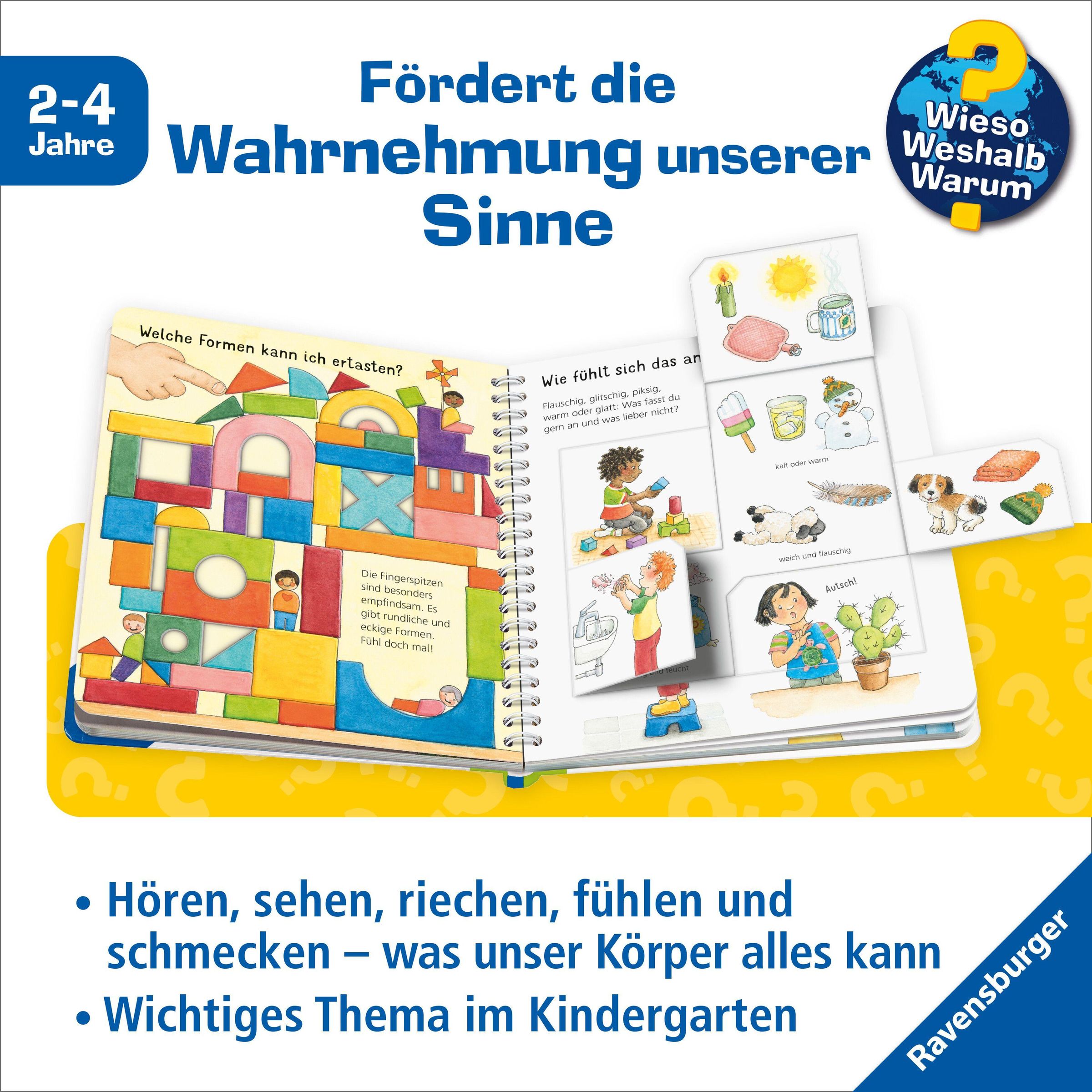 Kleine Kinder entdecken und erforschen die Welt durchs Anfassen, Sehen, Hören, Schmecken und Riechen. Dieses Buch animiert sie dazu, genau hinzuschauen, Formen zu erfühlen und Klappen zu öffnen. Was duftet und was stinkt? Wie klingen Fliege und Frosch? Was fühlt sich weich, kalt oder spitz an? Kinder erfahren auch, dass nicht alle Menschen gleich gut sehen oder hören können, und wie sie sich dann behelfen. Interaktiv und spielerisch fördert das Buch die bewusste Wahrnehmung der eigenen Sinne.