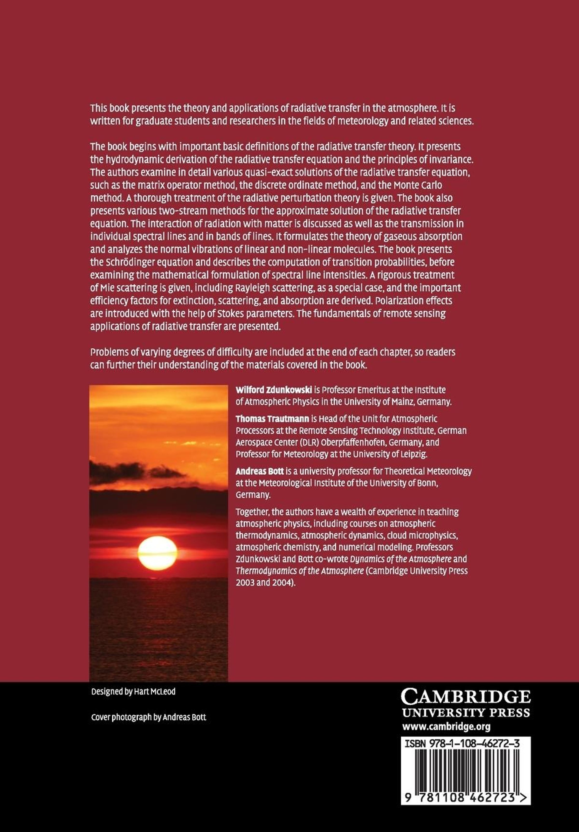 This book presents the theory and applications of radiative transfer for graduate students and researchers in meteorology and related sciences.