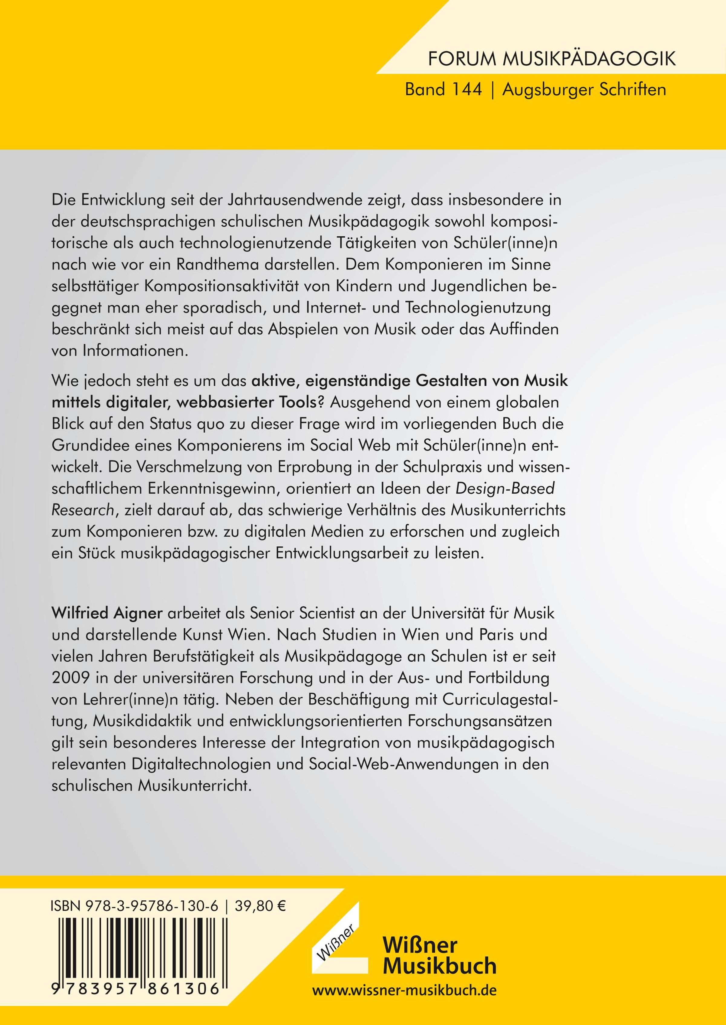 Wie jedoch steht es um das aktive, eigenständige Gestalten von Musik mittels digitaler, webbasierter Tools? Ausgehend von einem globalen Blick auf den Status quo zu dieser Frage wird im vorliegenden Buch die Grundidee eines Komponierens im Social Web mit Schüler(inne)n entwickelt. Die Verschmelzung von Erprobung in der Schulpraxis und wissenschaftlichem Erkenntnisgewinn, orientiert an Ideen der Design-Based Research, zielt darauf ab, das schwierige Verhältnis des Musikunterrichts zum Komponieren bzw. zu digitalen Medien zu erforschen und zugleich ein Stück musikpädagogischer Entwicklungsarbeit zu leisten.