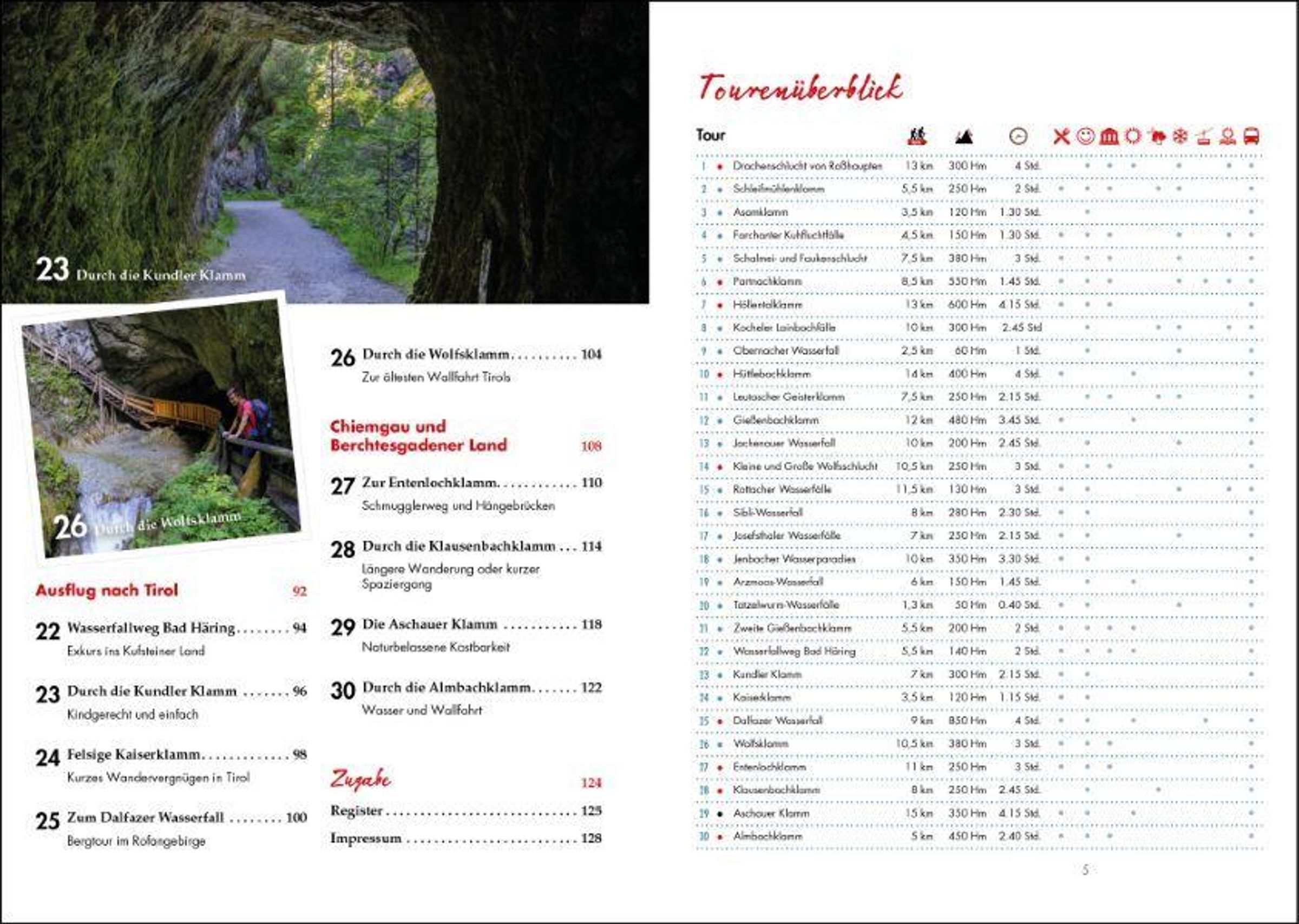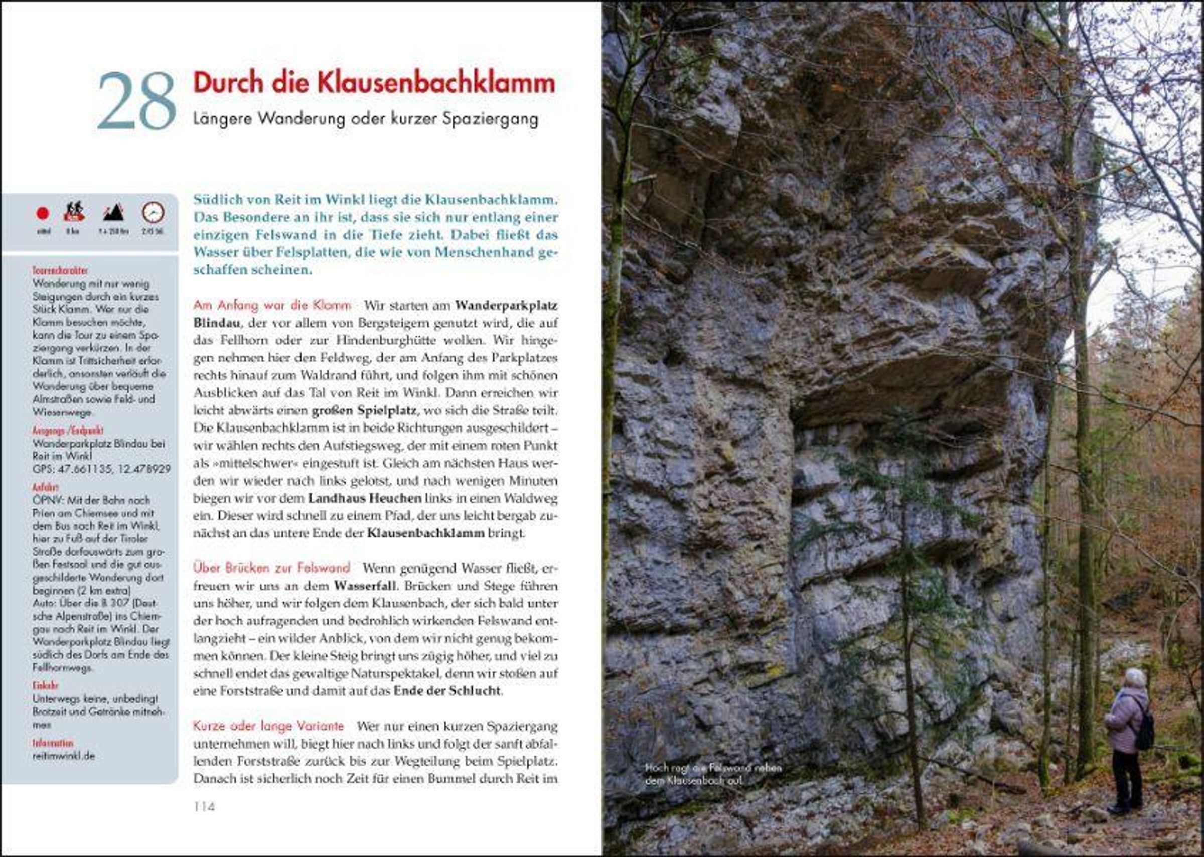 Lust auf Abenteuer und Abkühlung? Dann nichts wie los, zu denspektakulären Schluchten und wilden Wasserfällen zwischen Füssen und Berchtesgaden. Enge Felsen, tosendes Wasser, steile Fallstufen, idyllische Gumpen und eiskalte Duschen: Unternehmen Sie beeindruckende Klassikerwanderungen, etwa durch die Garmischer Partnachklamm oder zu den Tatzelwurmwasserfällen , daneben auch Beschaulich-Familienfreundliches, beispielsweise zu den Kuhfluchtfällen .