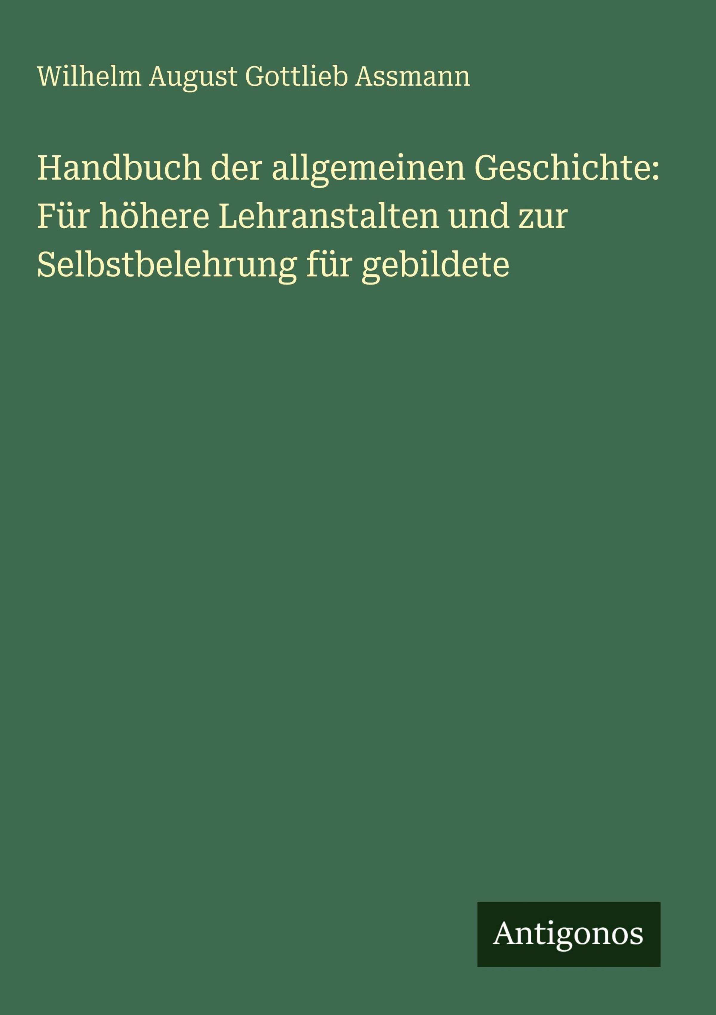 Wilhelm August Gottlieb Assmann: Handbuch der allgemeinen Geschichte: Für höhere Lehranstalten und zur..., Gebunden