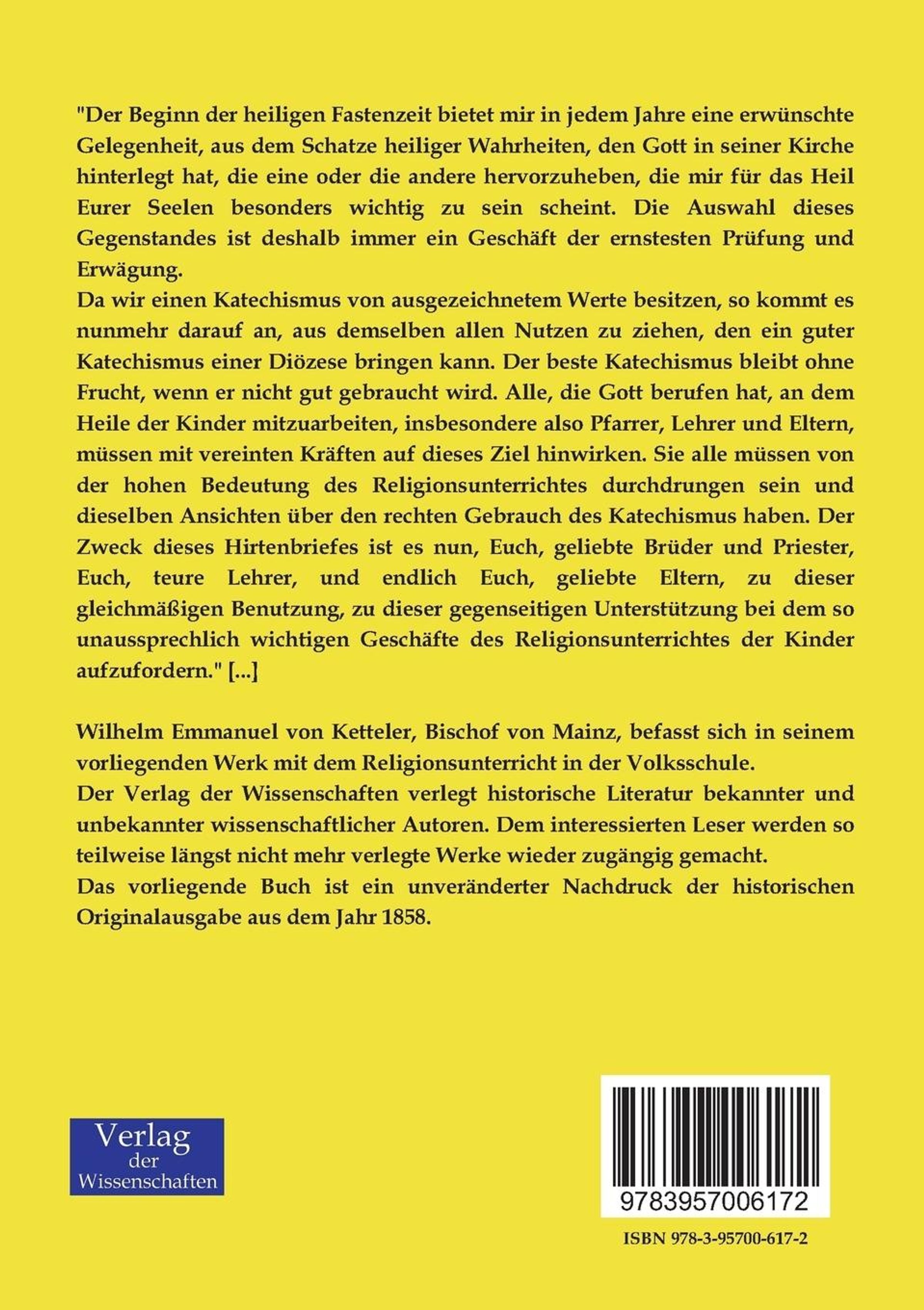 Wilhelm Emmanuel von Ketteler, Bischof von Mainz, befasst sich in seinem vorliegenden Werk mit dem Religionsunterricht in der Volksschule. Der Verlag der Wissenschaften verlegt historische Literatur bekannter und unbekannter wissenschaftlicher Autoren. Dem interessierten Leser werden so teilweise längst nicht mehr verlegte Werke wieder zugängig gemacht. Das vorliegende Buch ist ein unveränderter Nachdruck der historischen Originalausgabe aus dem Jahr 1858.