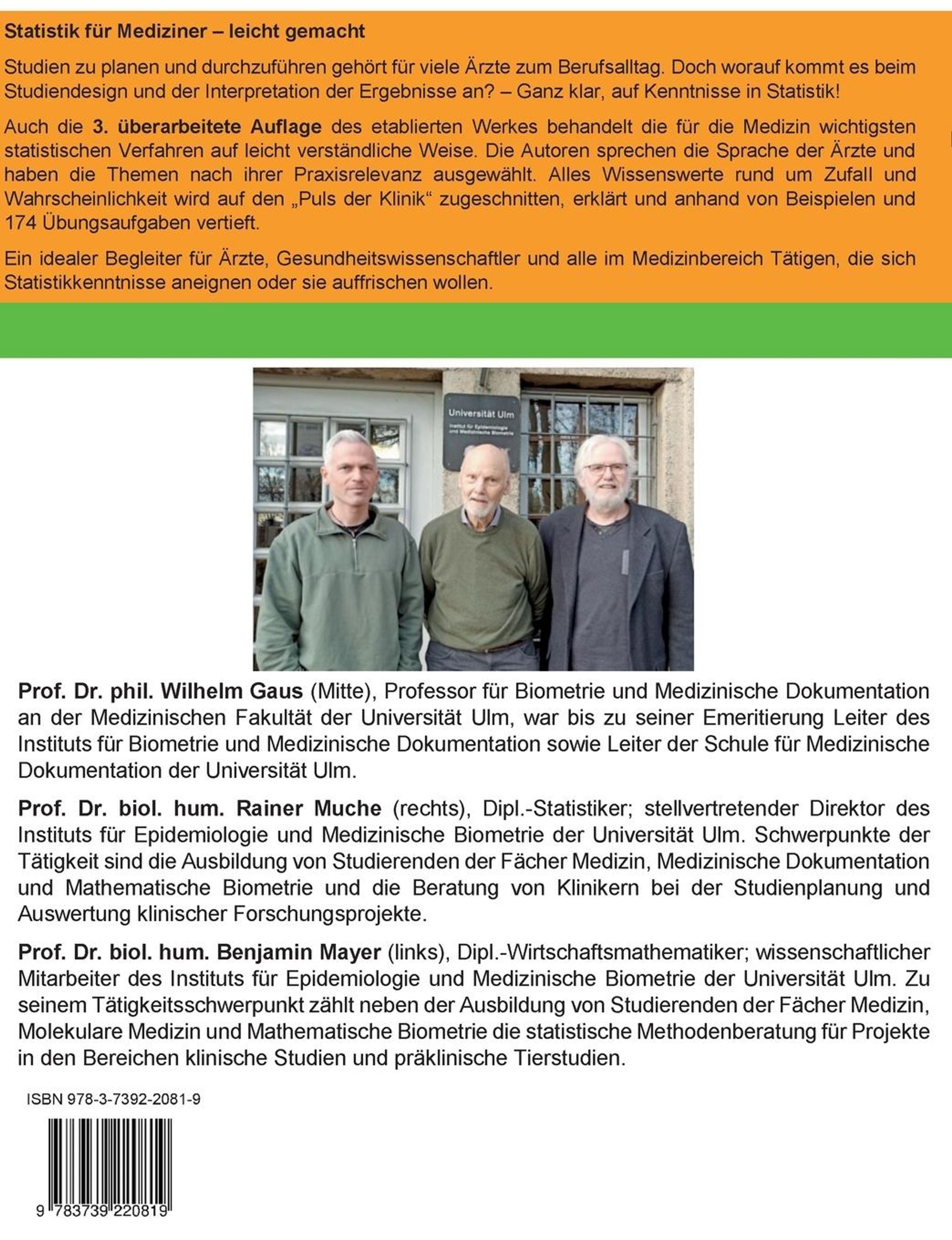 Prof. Dr. phil. Wilhelm Gaus, Professur für Biometrie und Medizinische Dokumentation, Universität Ulm;Gründer und ehem. Leiter der Schule für Medizinische Dokumentation; ehem. Direktor des Instituts für Biometrie und Medizinische Dokumentation der Universität UlmBiografie (Rainer Muche)