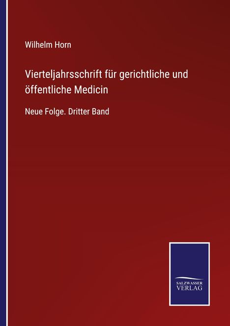 Der Artikel Wilhelm Horn: Vierteljahrsschrift für gerichtliche und öffentliche Medicin wurde in den Warenkorb gelegt.