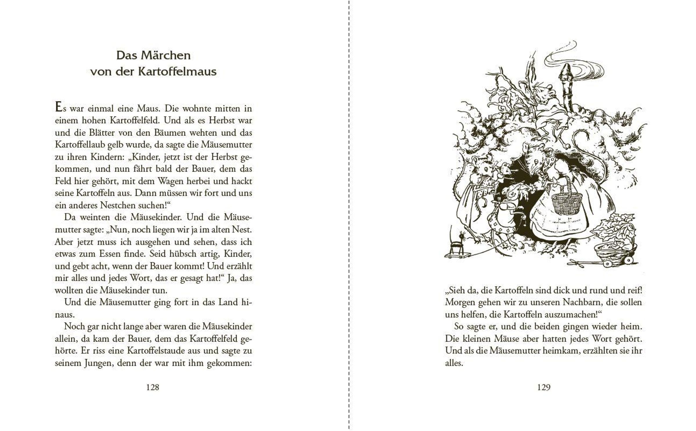 Mitten in einem großen Garten steht das alte Haus. Dort lebt die Großmutter mit dem alten Hund Bautz, dem uralten Hahn Krahks und der ururalten Katze Murks. Sie kennt so viele Geschichten, dass ihre Enkelkinder Peter und Gretel nichts lieber mögen, als ihr zuzuhören. Und so geht es den kleinen und großen Lesern seit Generationen: Sie kriegen nicht genug von den Märchen um den Kartoffelkönig, dem Uhrenmännlein und all den anderen Wesen, die sich in und um das alte Haus tummeln.
