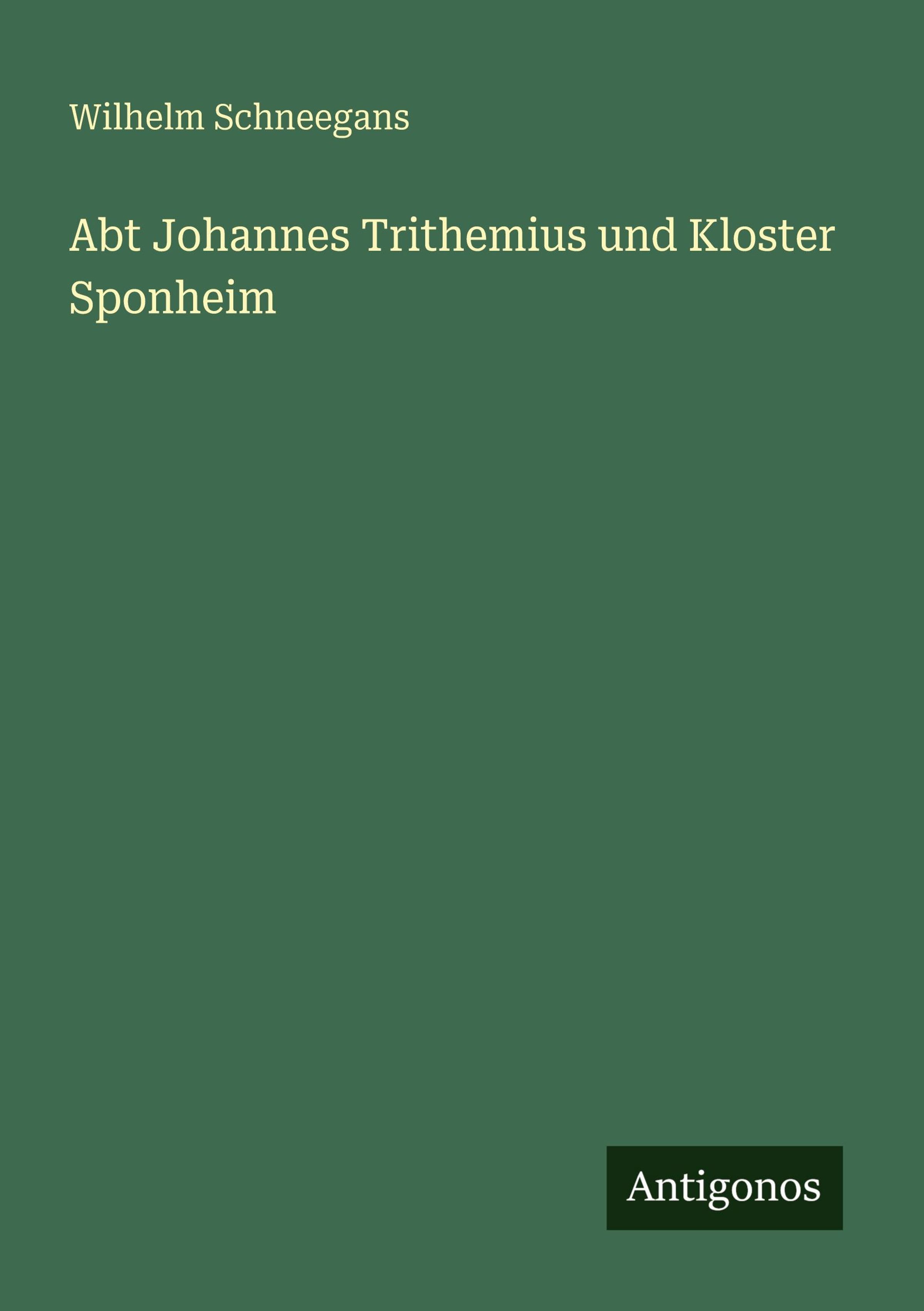 Wilhelm Schneegans: Abt Johannes Trithemius und Kloster Sponheim, Kartoniert / Broschiert