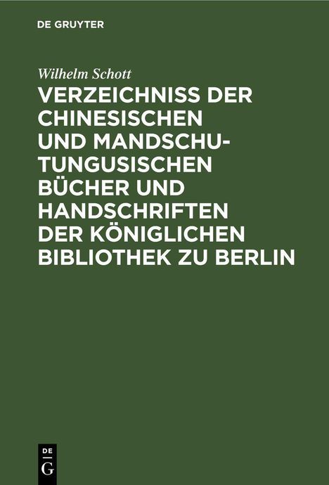 Wilhelm Schott: Verzeichniss der Chinesischen und Mandschu-Tungusischen Bücher und Handschriften der Königlichen..., Gebunden