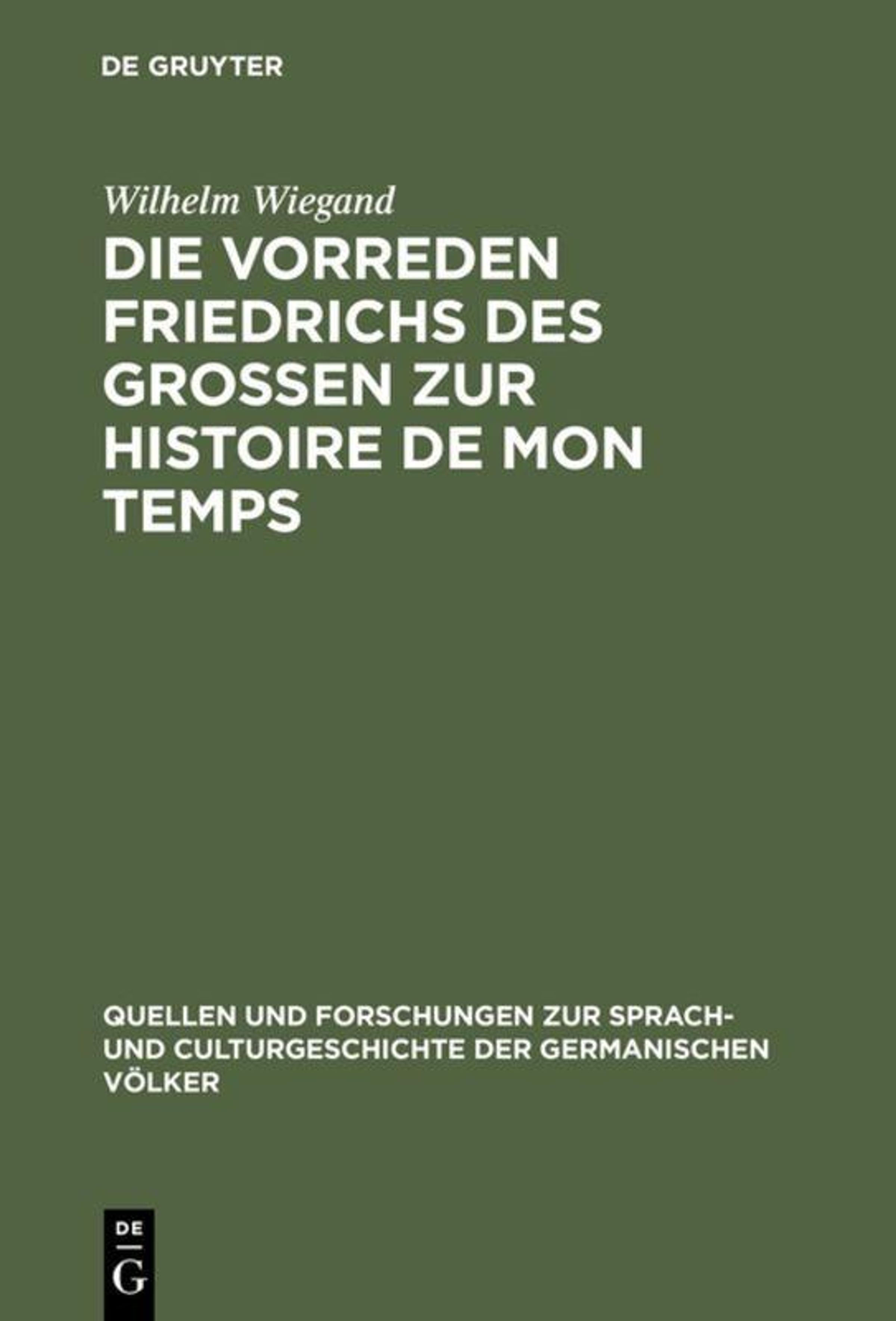Wilhelm Wiegand: Die Vorreden Friedrichs des Grossen zur Histoire de mon temps, Gebunden
