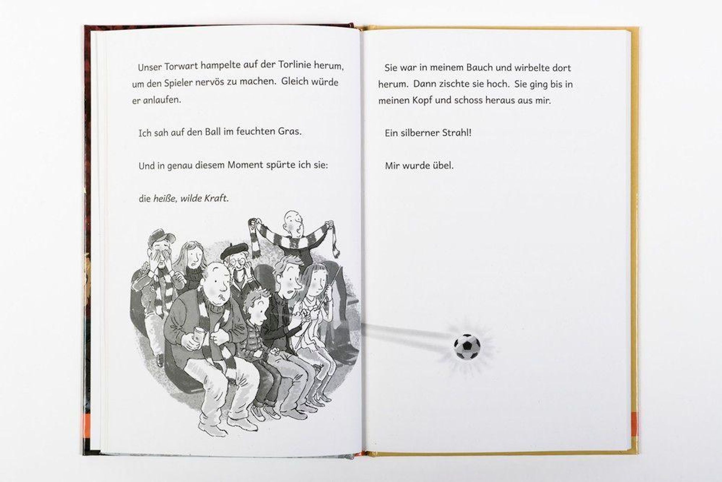 Es passiert, als Toni zum ersten Mal im Fußball-Stadion dabei ist. Das Spiel ist langweilig. Die Mannschaft fabriziert nur Fehlpässe. Da spürt Toni sie plötzlich: die HEIßE WILDE KRAFT. Sie wirbelt in seinem Bauch, dann schießt sie aufs Spielfeld und legt sich silbern funkelnd auf den Ball. Alles bewegt sich in Zeitlupe und Toni kann den Ball genau steuern. Die Mannschaft gewinnt 1: 0! Ab jetzt läuft alles super. Bis zu diesem Match gegen die Bayern, bei dem plötzlich alles auf dem Spiel steht.
