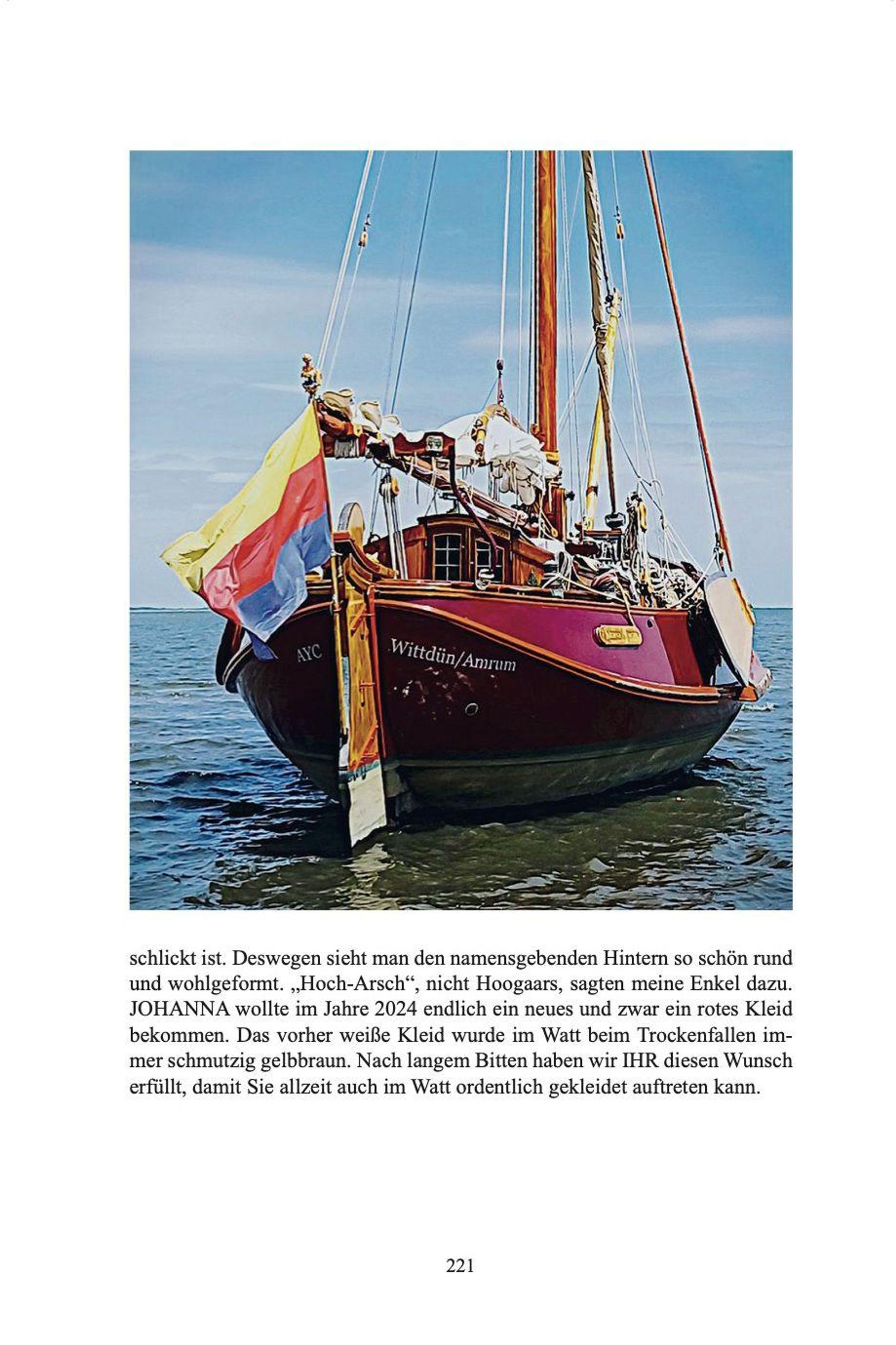 Hinter JOHANNA von AMRUM verbergen sich nicht nur ein Schi¿ und die Insel Amrum, sondern dazwischen eingeflochten untrennbar miteinander verwobene Geschichten und Romanzen. Erzählt mit friesischer und holländischer Einfärbung, querab von Baatjes Stich, einem einsamen Norddorfer Dünental. Aufgeholt und verbändselt mit der zee, dem Eiland und den Vorfahren. Geprägt und aufgewachsen in einer heute kaum vorstellbaren großen Freyheit, einem kleinen friesischen Inseldorf in den Amrumer Dünen, an der Kniepkante, im Watt, am und im Wasser. Friesisch mit der Muttermilch aufgesogen. Als Sprache nicht nur für die wichtigen Dinge des Alltags, sondern auch als Schutz und Windfang vor den Mächten des Festlands des damals nazi-verwurzelten Deutschlands der Nachkriegszeit. Weit draußen am Horizont zogen weiße Segel vorbei und weckten bei uns Inseljungs große Fantasien und Träume von einer Entdeckungsfahrt in die Welt achter de horizon. Eine Reise mit Zwischenhäfen und später seefesten Schi¿en von Norddorf nach Zeeland in der Scheldemündung, nach Schottland und Bornholm bis an den Himalaya und zurück nach Wittdün, dem Südpol der Insel Amrum. Willem Ruempler