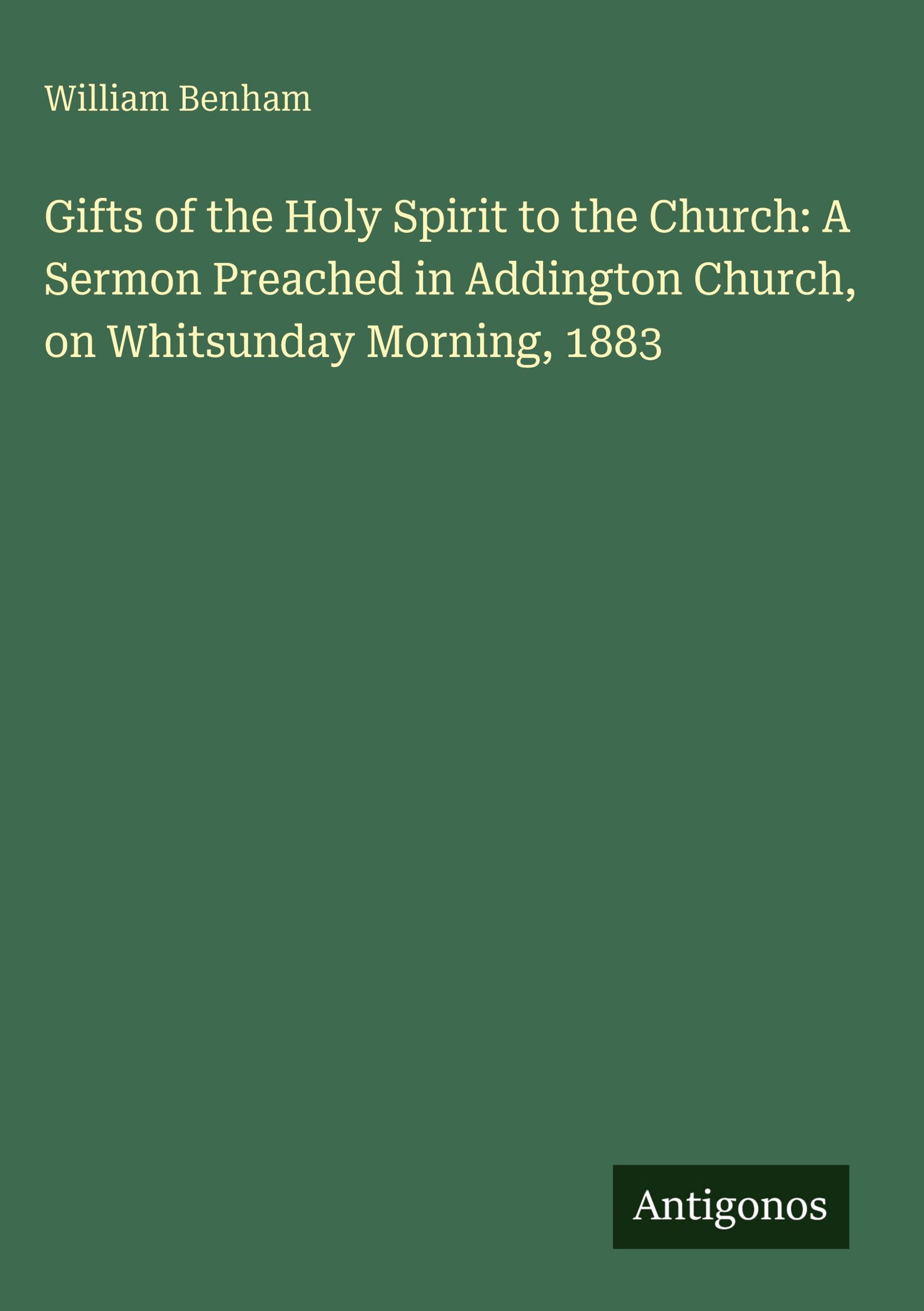 William Benham: Gifts of the Holy Spirit to the Church: A Sermon Preached in Addington Church, on Whitsunday..., Gebunden