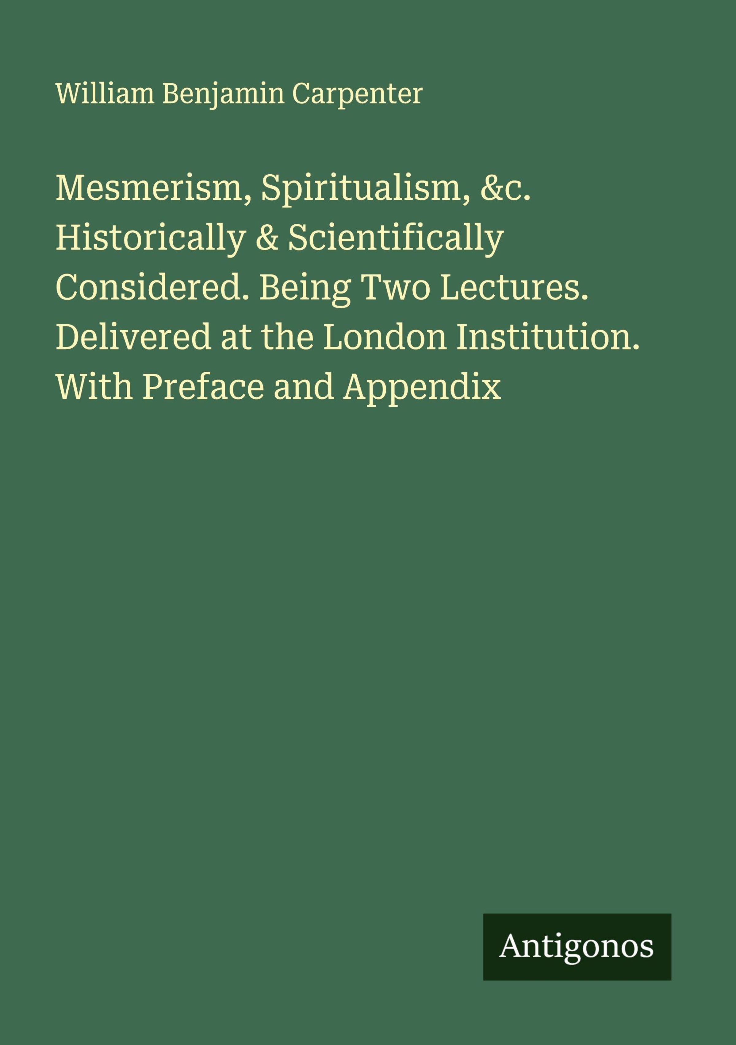 Mesmerism, Spiritualism, &c. Historically & Scientifically Considered. Being Two Lectures. Delivered at the London Institution. With Preface and Appendix