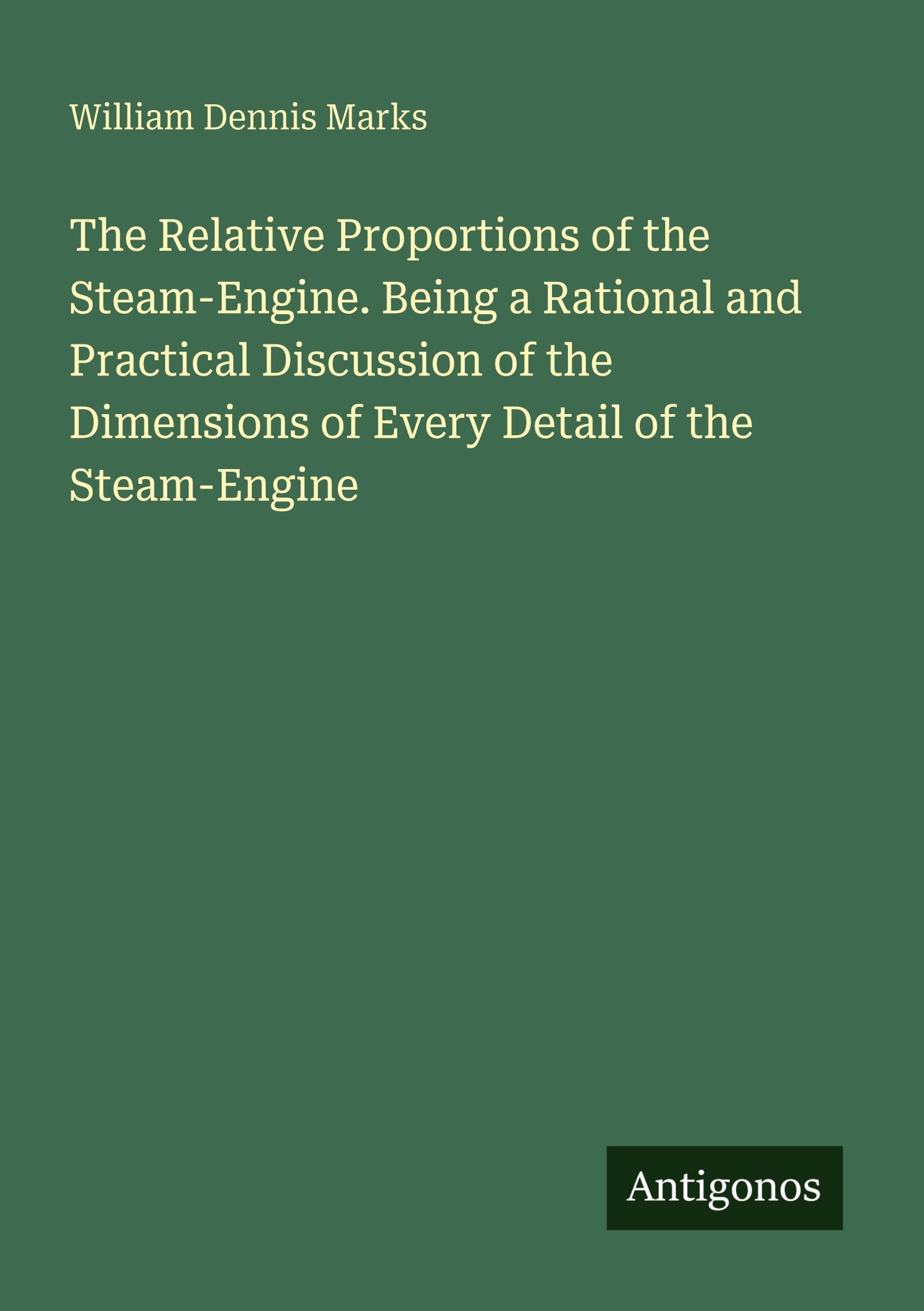 William Dennis Marks: The Relative Proportions of the Steam-Engine. Being a Rational and Practical Discussion of..., Kartoniert / Broschiert