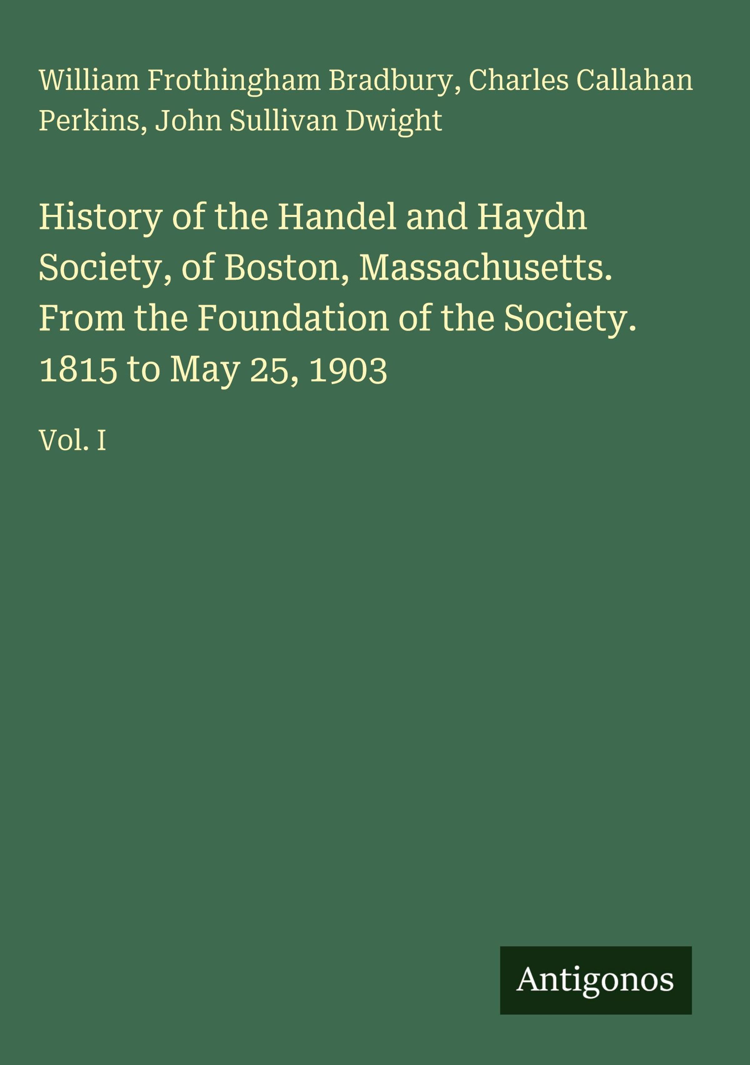 History of the Handel and Haydn Society, of Boston, Massachusetts. From the Foundation of the Society. 1815 to May 25, 1903