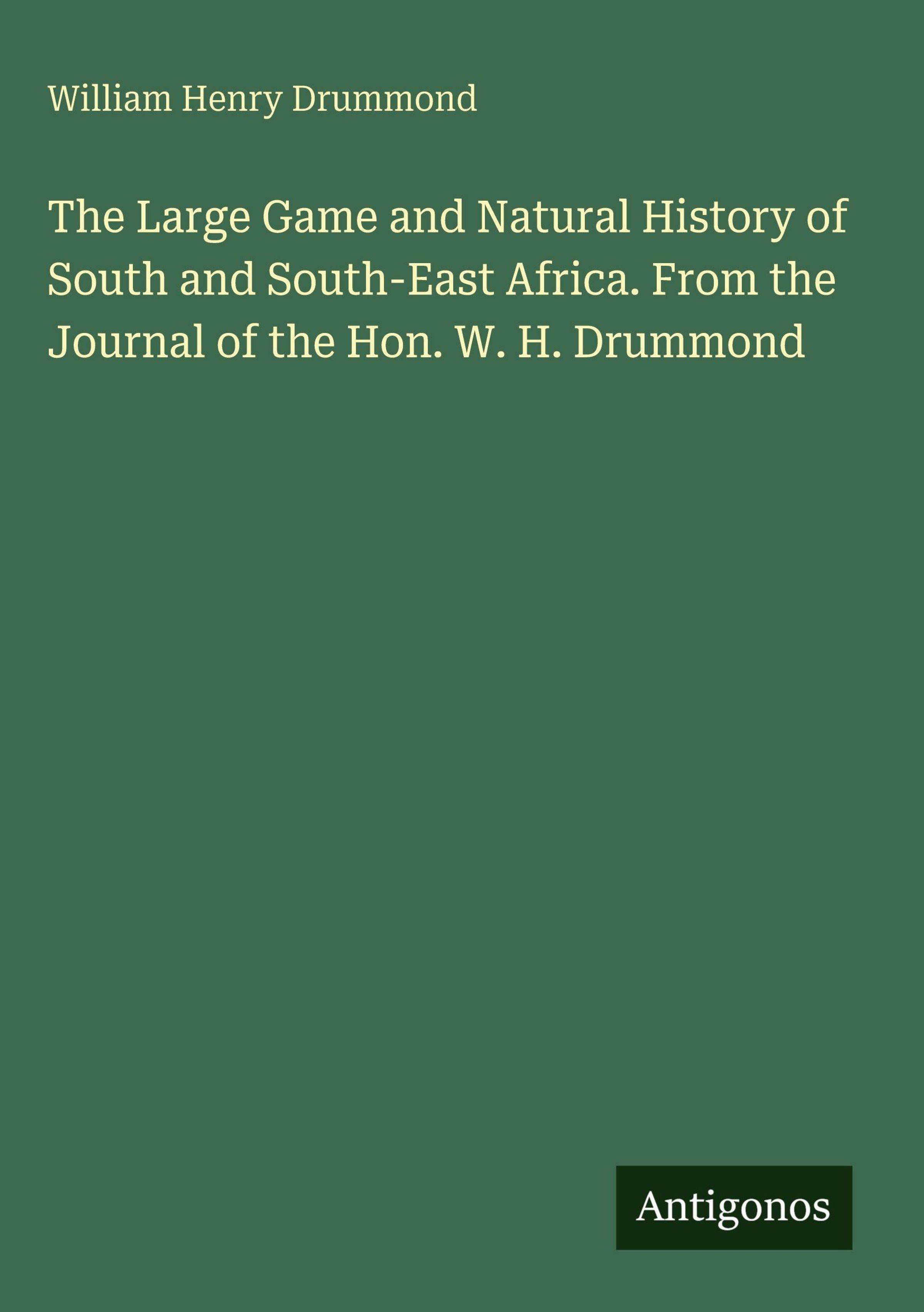 The Large Game and Natural History of South and South-East Africa. From the Journal of the Hon. W. H. Drummond