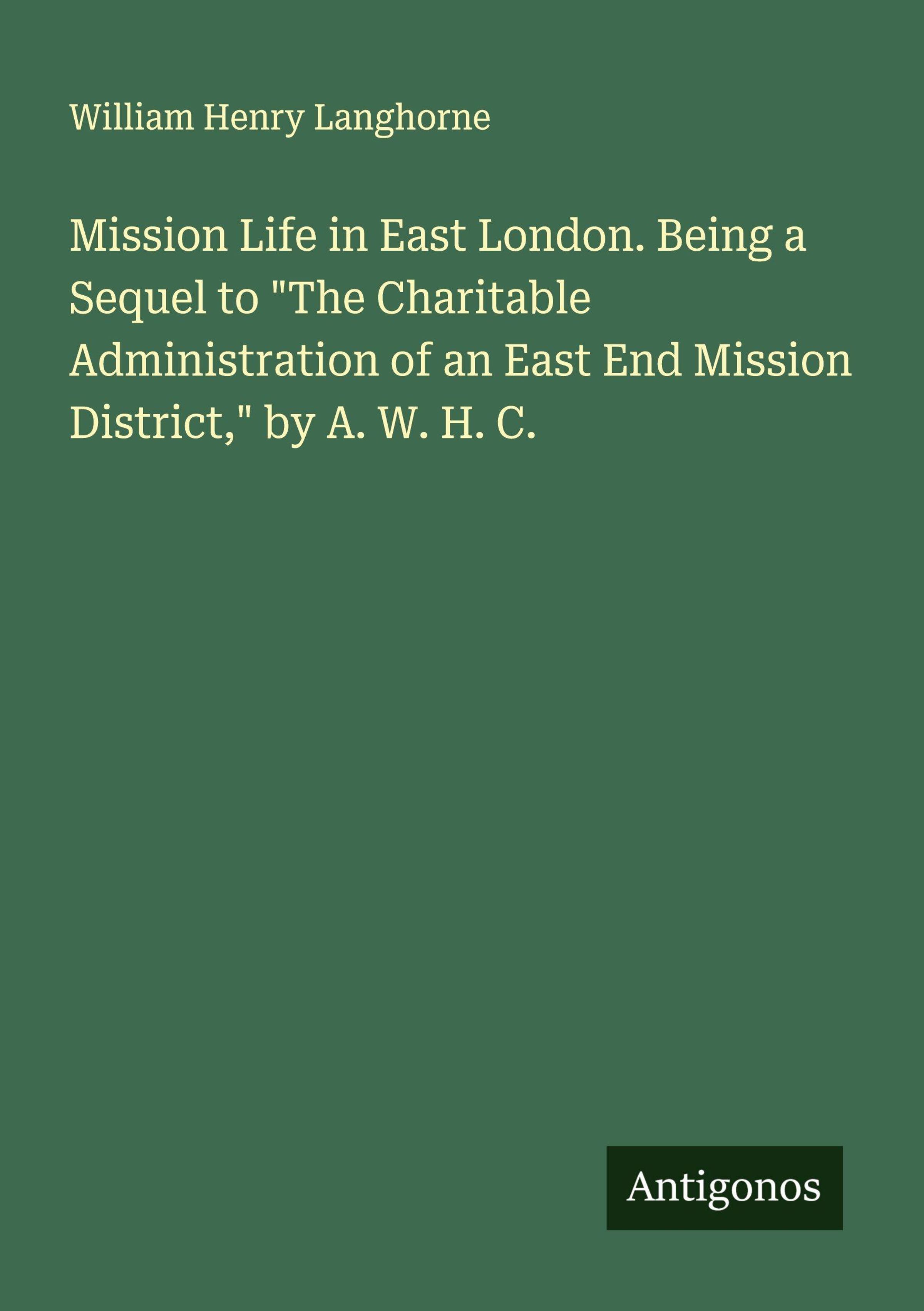 Weitere Ausgaben von Mission Life in East London. Being a Sequel to "The Charitable Administration of an East End Mission District," by A. W. H. C. |