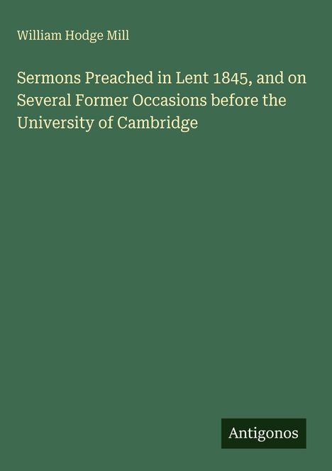William Hodge Mill: Sermons Preached in Lent 1845, and on Several Former Occasions before the University of..., Gebunden