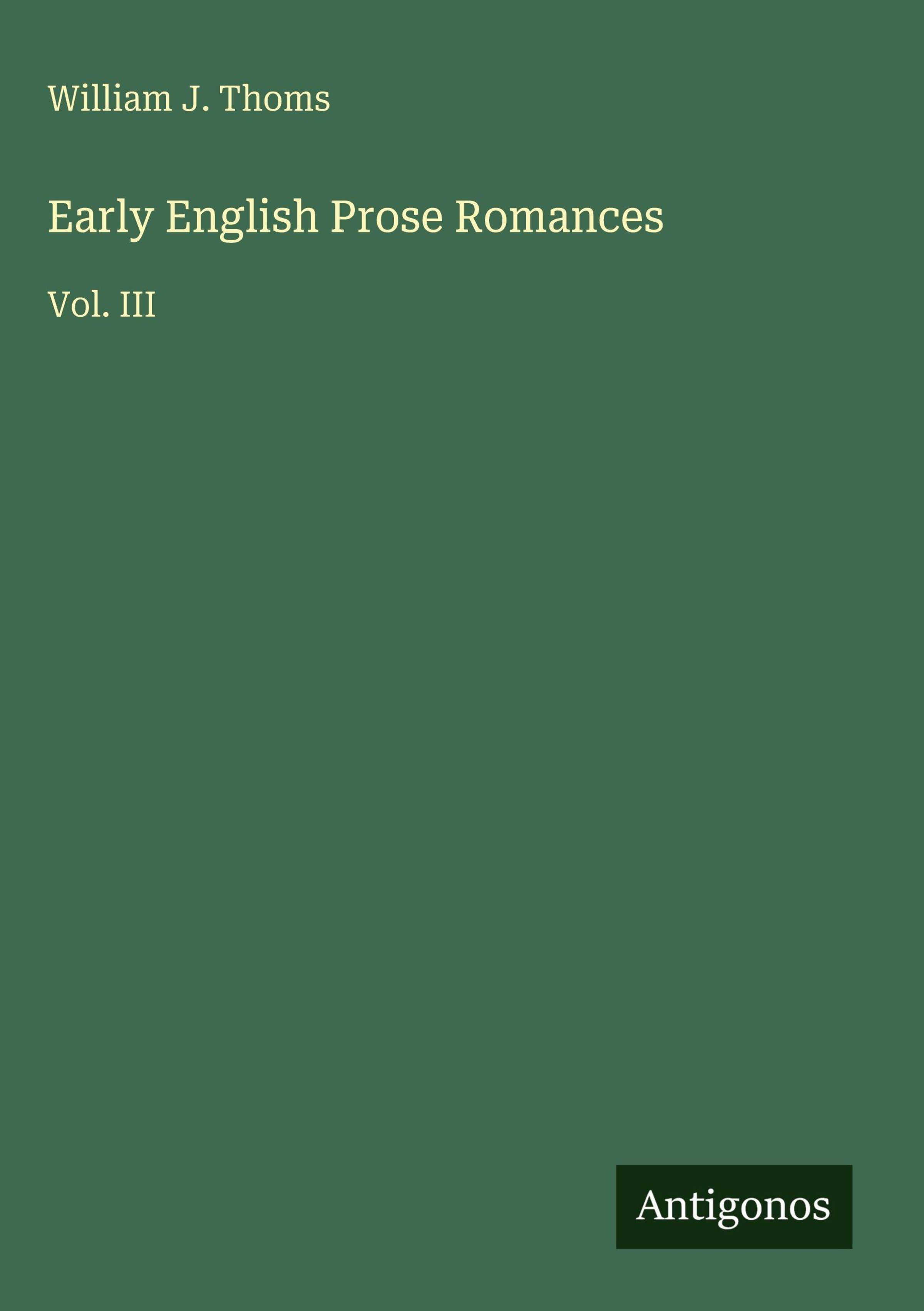 "Early English Prose Romances Vol. III" von William J. Thoms. Unten rechts: "Antigonos". Grüner Hintergrund., Buch