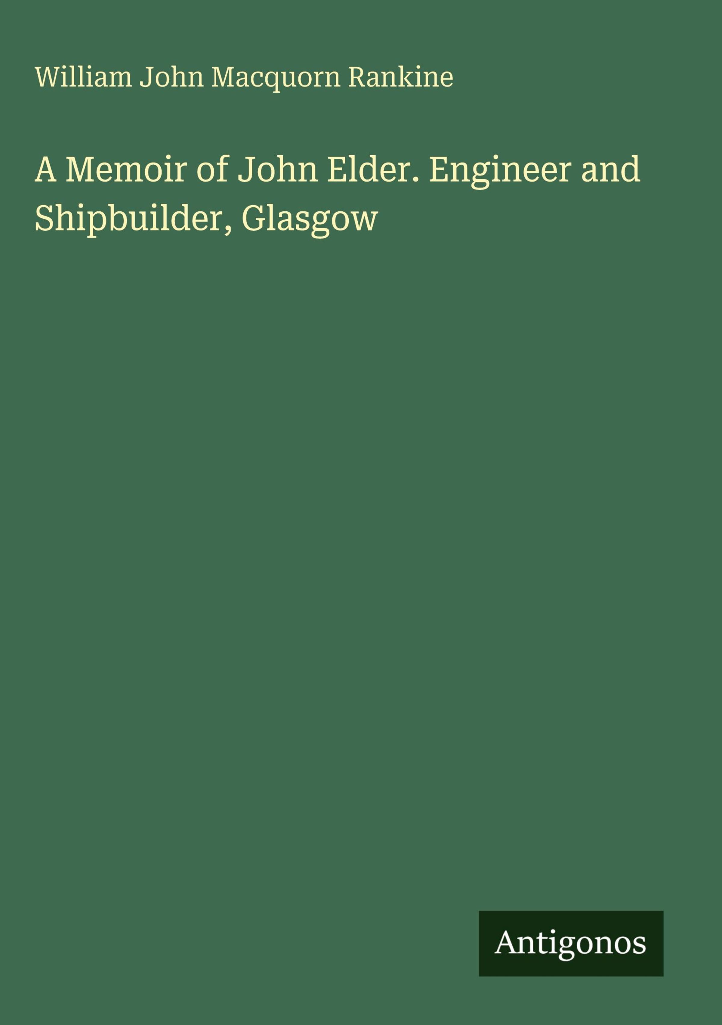 William John Macquorn Rankine: A Memoir of John Elder. Engineer and Shipbuilder, Glasgow, Gebunden