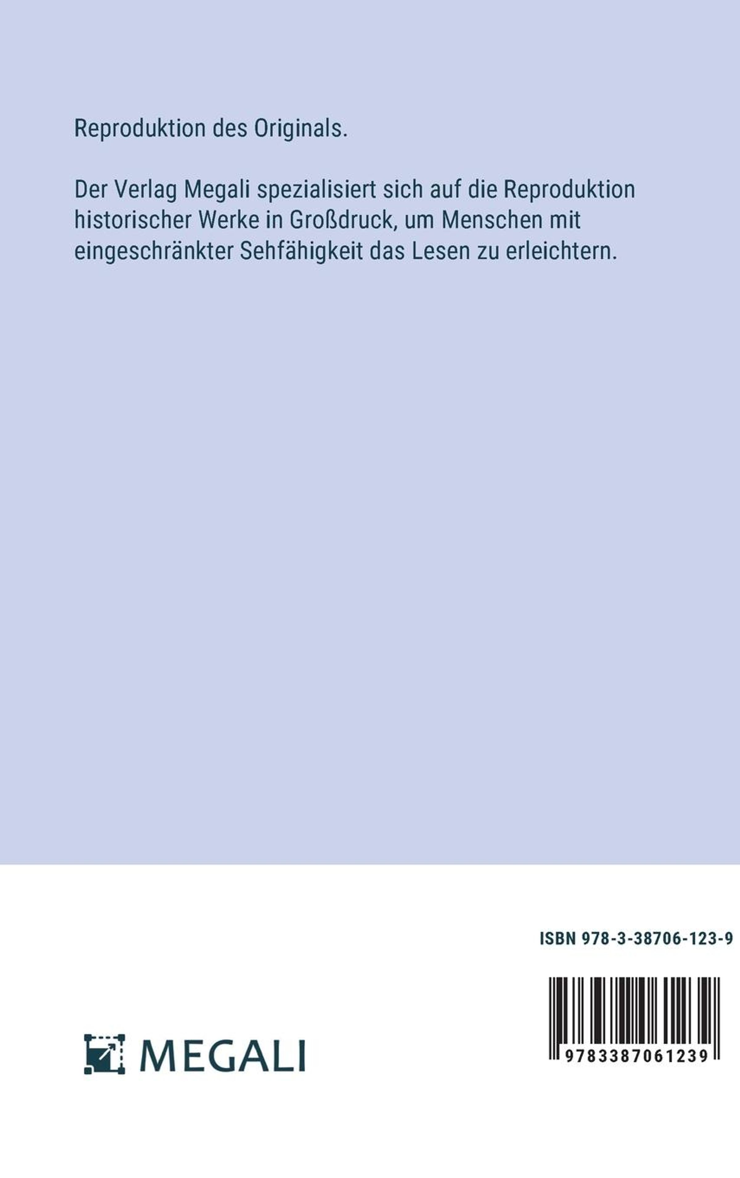 Reproduktion des Originals. Der Verlag Megali spezialisiert sich auf die Reproduktion historischer Werke in Großdruck, um Menschen mit eingeschränkter Sehfähigkeit das Lesen zu erleichtern.
