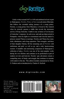 Likely written around 1607 or 1608 and attributed at least in part to Shakespeare, "Pericles, Prince of Tyre" is an adventure-filled play that follows the extended sailing journeys of a young prince. Pericles, a young prince from Phoenicia, is forced to flee Antioch when he correctly guesses a riddle that reveals the incestuous activity of King Antiochus. Unable to stay at home in Tyre because of Antiochus' vengeance, he sails away and ends up shipwrecked in Pentapolis, where he fights in a tournament and wins the hand of a princess named Thaisa in marriage. Pericles and Thaisa face many trials, tribulations, and a long separation. Their struggles, and those of their daughter Marina, fill the remaining acts of "Pericles" with misfortune and grief, as well as joy and a truly heartwarming reunion. A laudable and entertaining component of Shakespeare's collection of plays, "Pericles" was one of his most popular works during his own lifetime and continues to be performed as part of modern revivals and festivals. Pericles' epic adventures remain a compelling story of family and struggle that continues to resonate with readers to this day. This edition is printed on premium acid-free paper, includes annotations by Henry N. Hudson, and an introduction by Charles H. Herford.