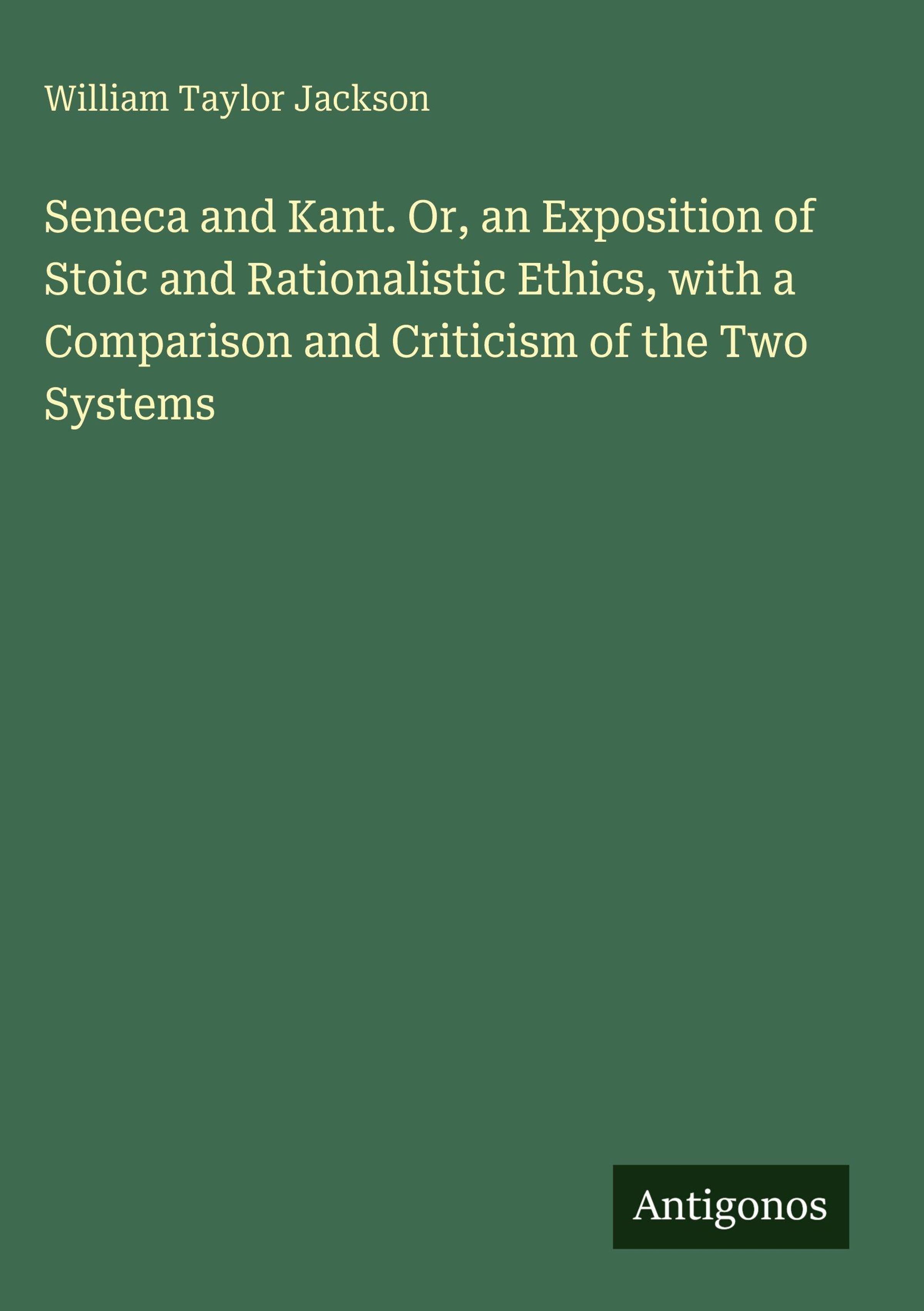 William Taylor Jackson: Seneca and Kant. Or, an Exposition of Stoic and Rationalistic Ethics, with a Comparison..., Gebunden