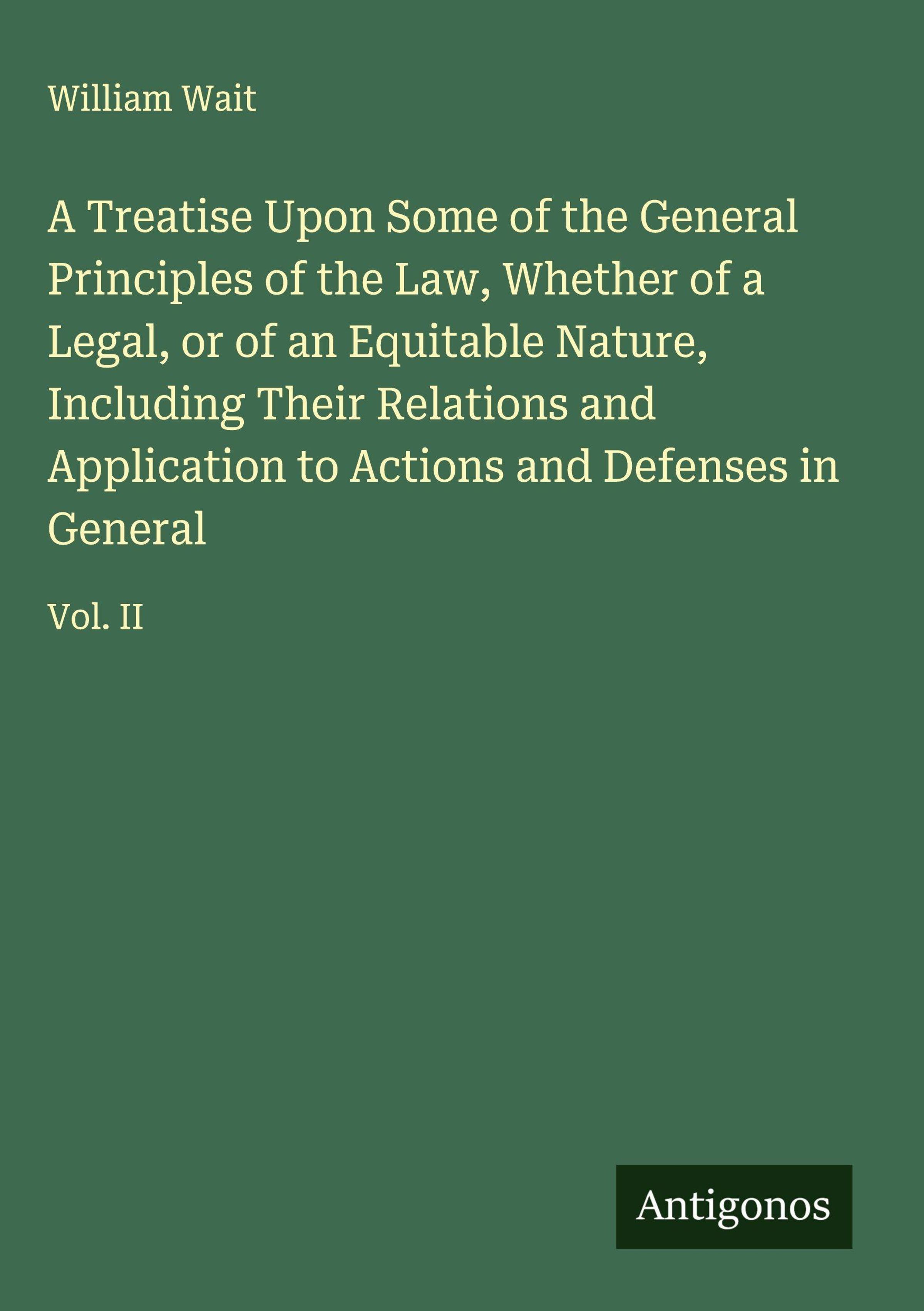 William Wait: A Treatise Upon Some of the General Principles of the Law, Whether of a Legal, or of an Equitable..., Gebunden