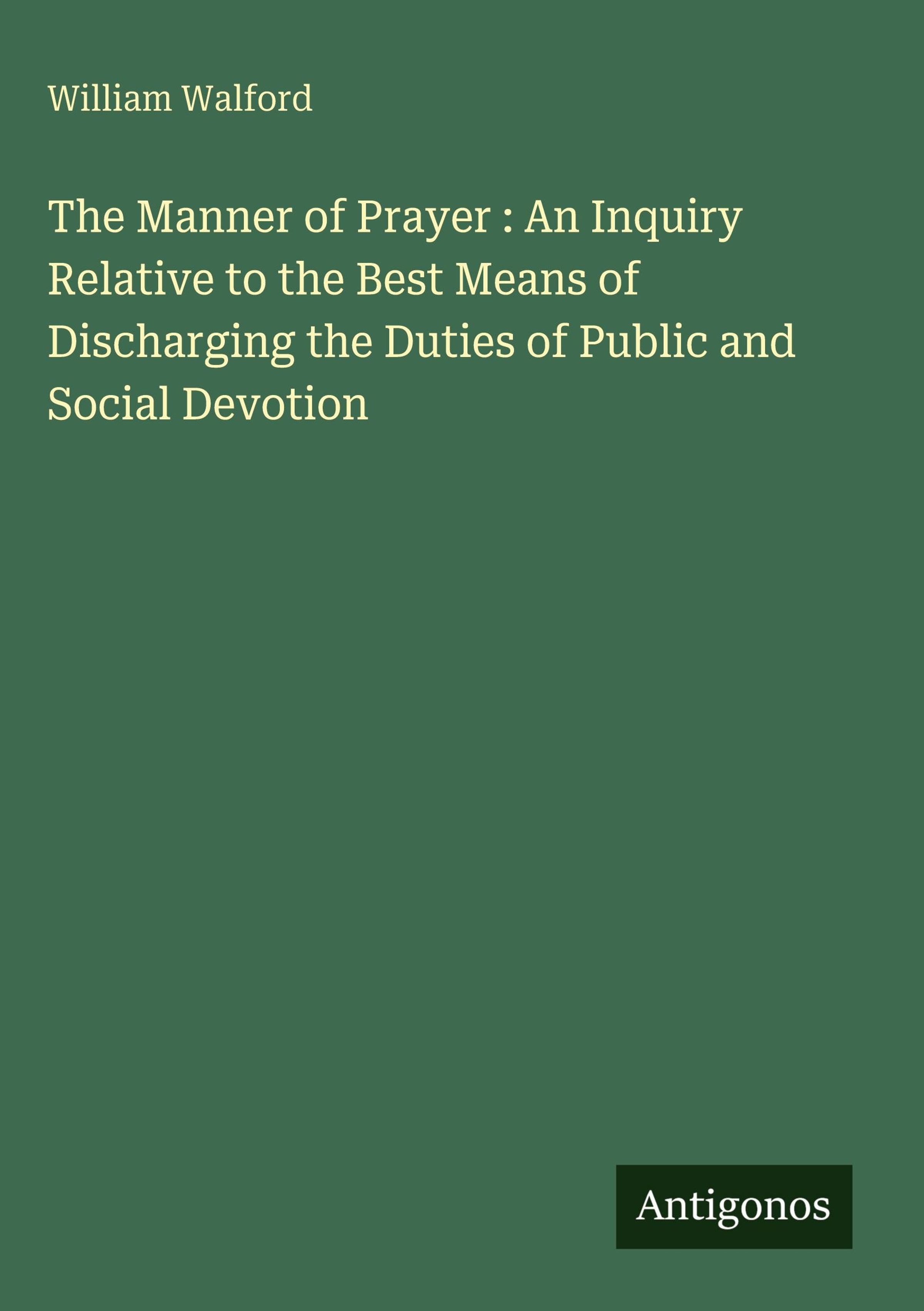 William Walford: The Manner of Prayer : An Inquiry Relative to the Best Means of Discharging the Duties of..., Gebunden
