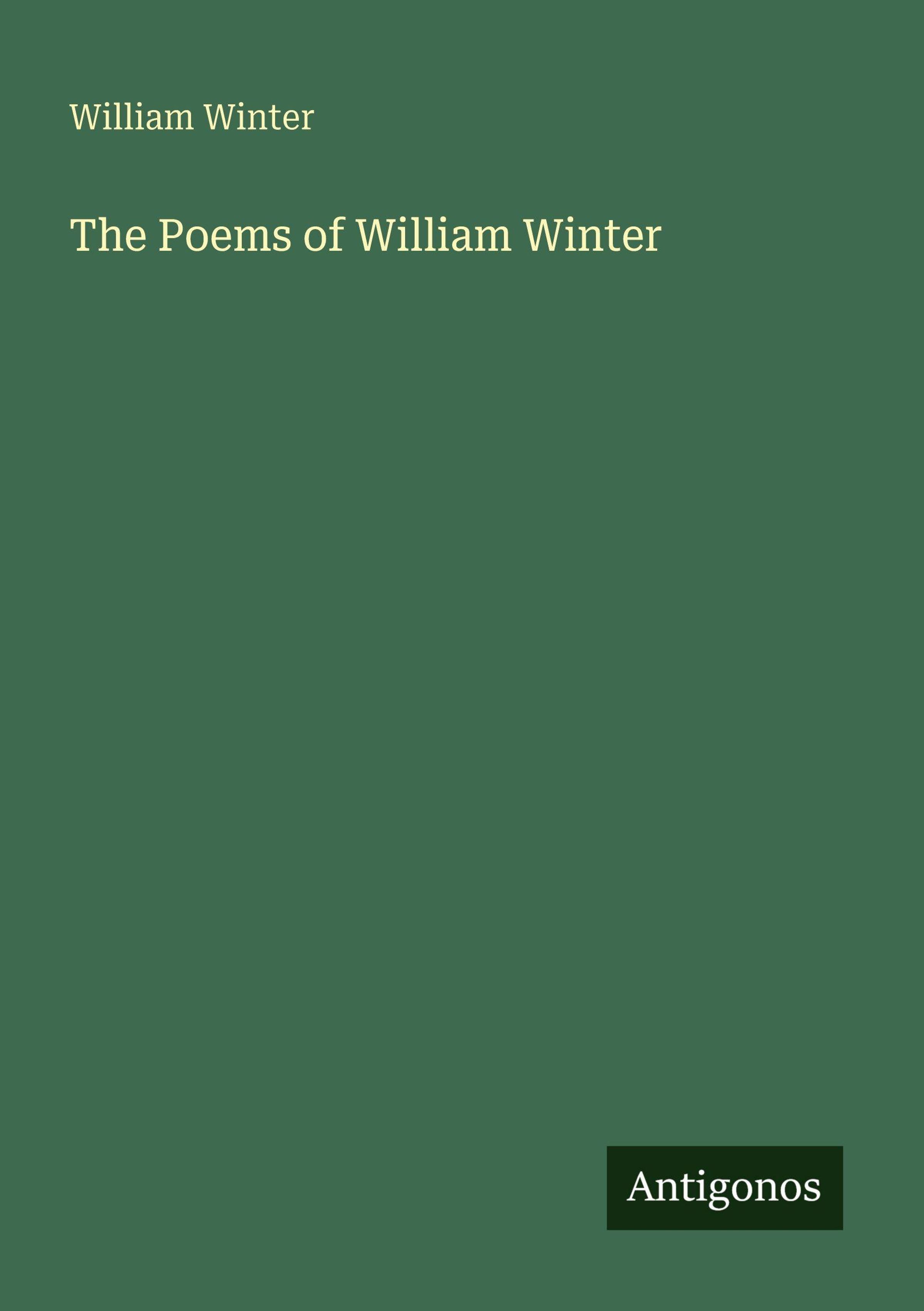 Text: "William Winter", "The Poems of William Winter", "Antigonos" (Logo). Grüner Hintergrund, schlichtes Design., Buch