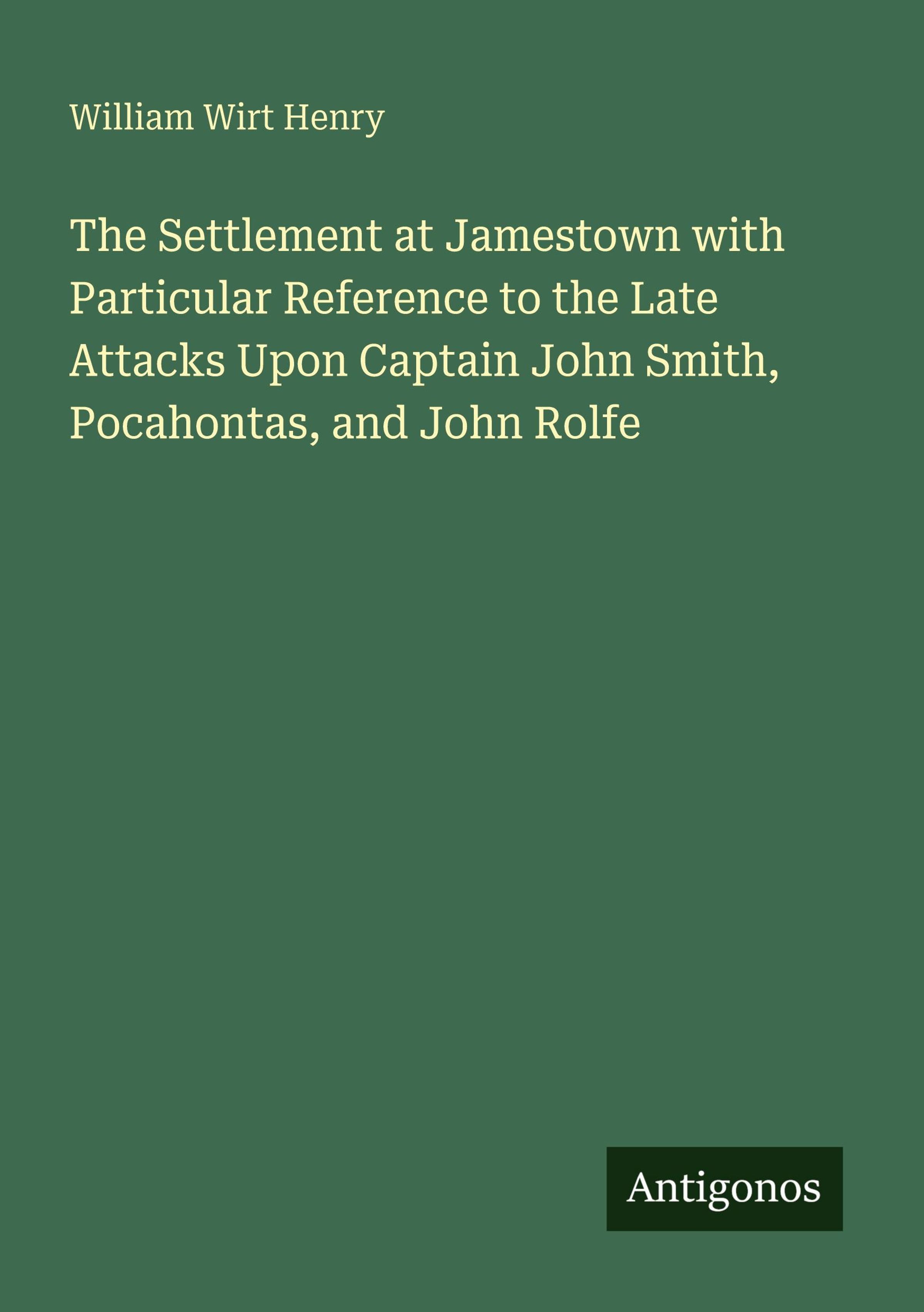 The Settlement at Jamestown with Particular Reference to the Late Attacks Upon Captain John Smith, Pocahontas, and John Rolfe