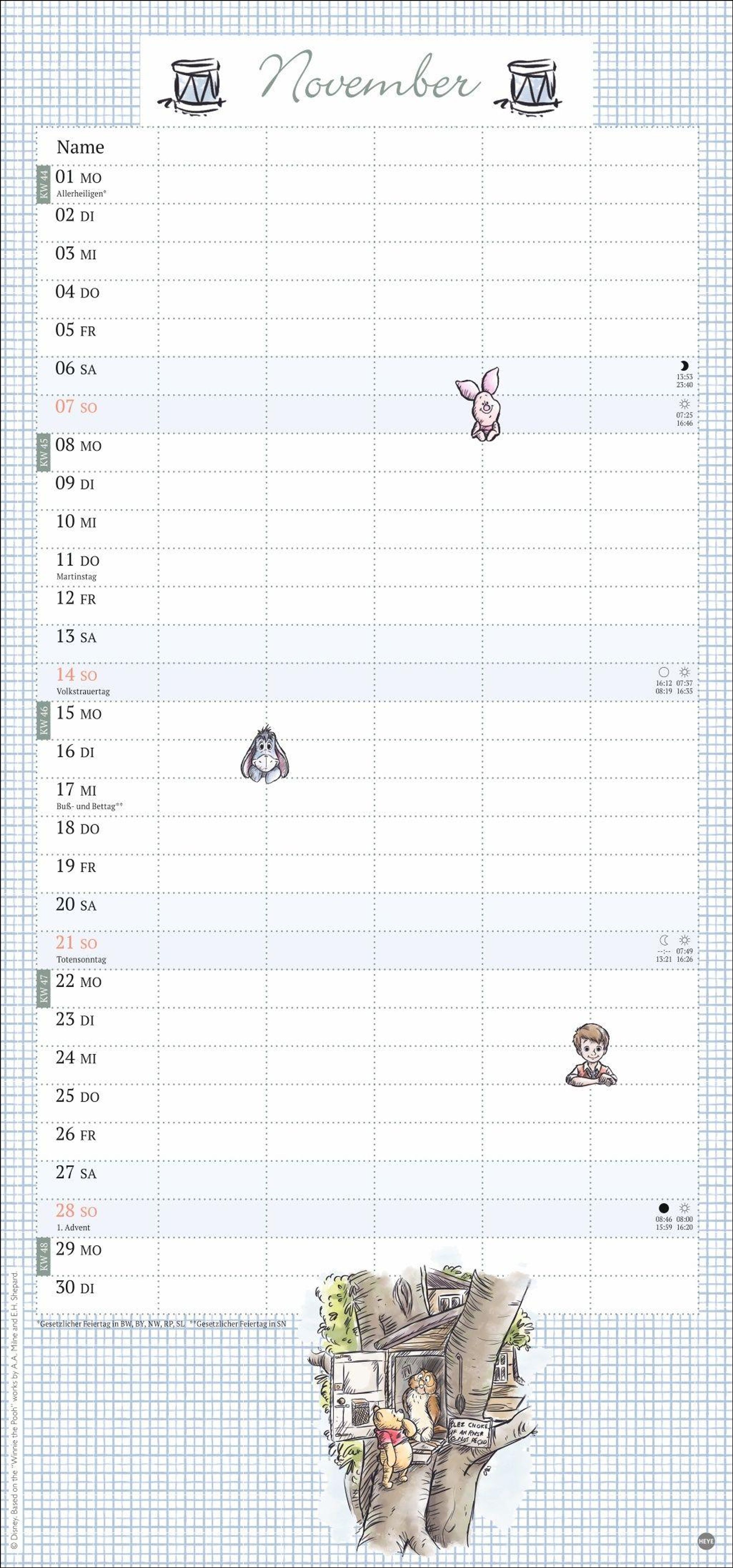- Terminkalender mit Abenteuern von Winnie Puuh und seinen Freunden. Praktischer Wandkalender mit 5 Spalten. Liebvoll illustrierter Wandplaner.