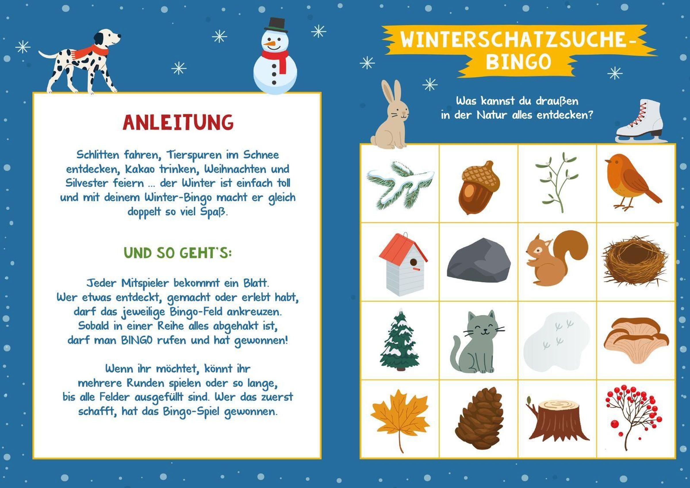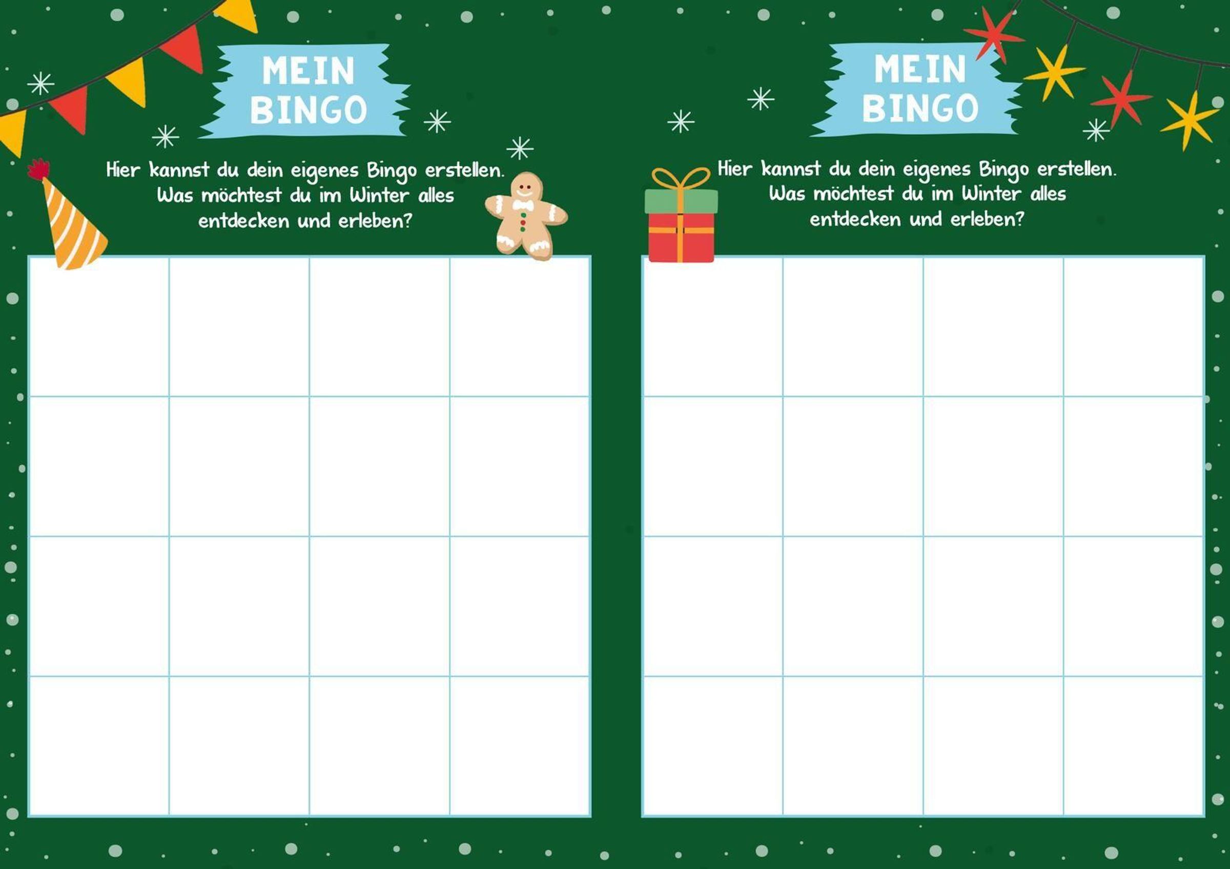 Dieser Bingo-Block mit über 90 Spielvorlagen ist perfekt für die Winterzeit! Ob Abenteuerspaziergänge in der Natur oder Beschäftigungsideen für das Warten auf die Geschenke, mit diesem Block wird es garantiert nicht langweilig!